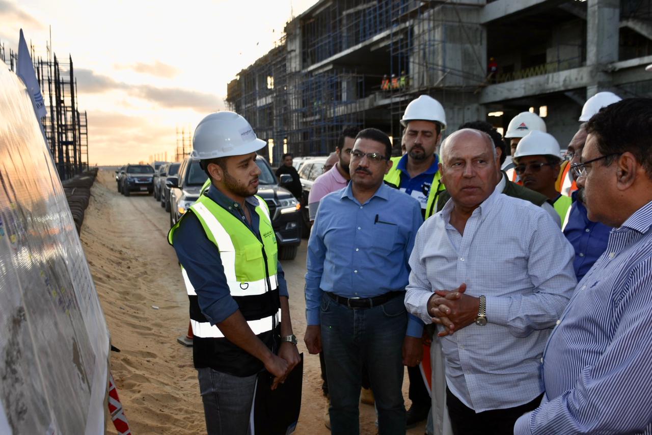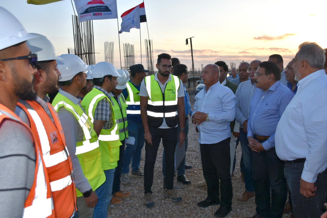 وتابع الوزير خلال جولته فى هذه المسافة مع رئيس وقيادات الهيئة العامة للطرق والكباري مسار المشروع والاعمال الصناعية من كباري وانفاق واخوار وخرسانات الميول التي تحمي جوانب الجسر وأعمال الحماية من اخطار السيول في هذه المسافة ووجه الوزير بتنفيذ الأعمال وفقا لقياسات الجودة العالية والعمل على مدار الساعة للانتهاء من المشروع وفقاً للموعد المخطط أكد وزير النقل، أن الأعمال المدنية والإنشاءات تتم بواسطة كبريات الشركات المصرية المتخصصة فى هذه المجالات، بالإضافة إلى الأعمال الصناعية على الطرق المتقاطعة مع مسار القطار، تحت إشراف الاستشارى العام للمشروع "سيسترا" الفرنسى.
