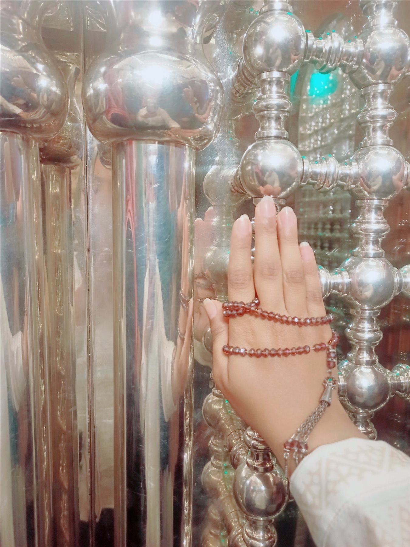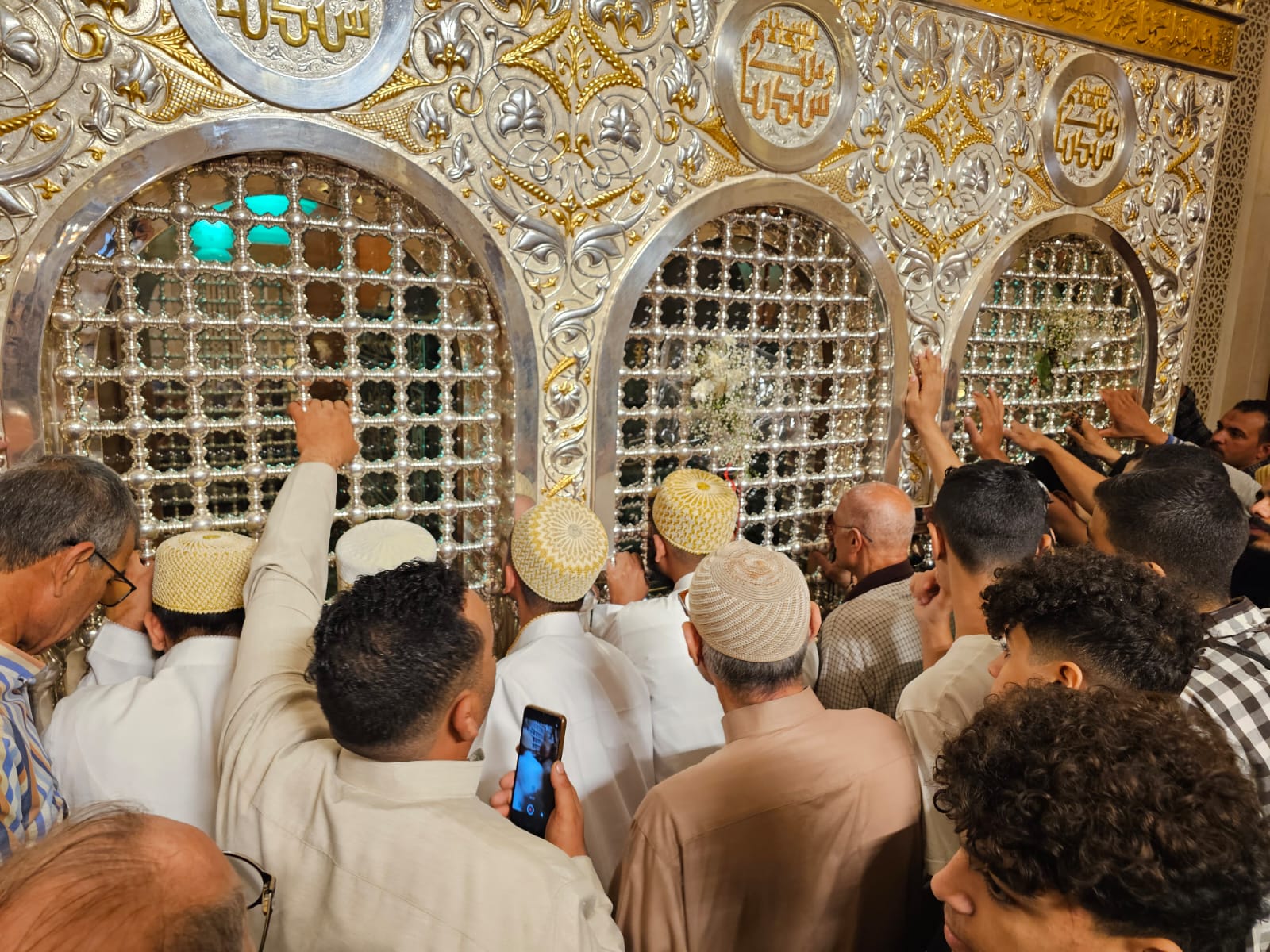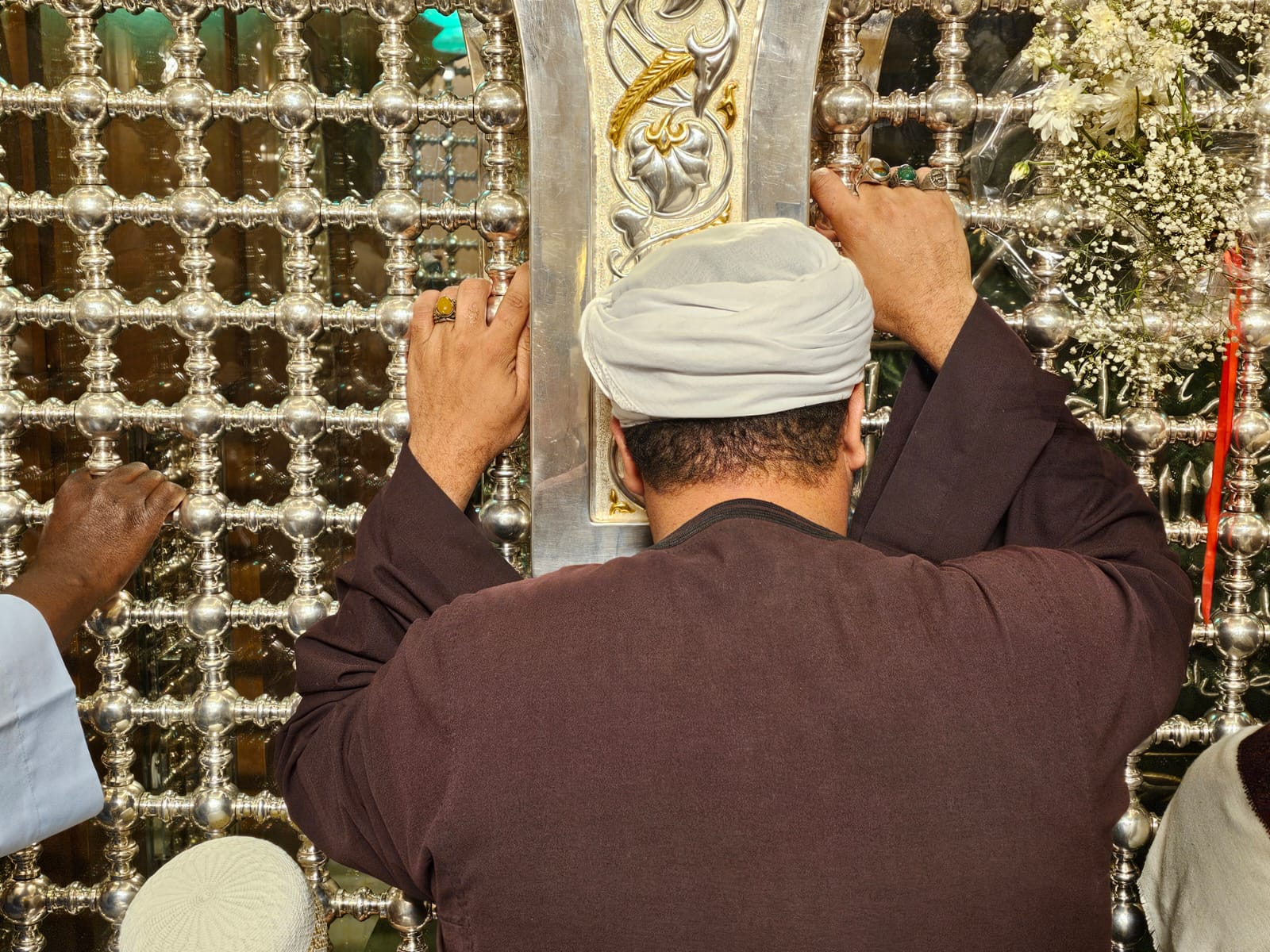 امتدت الأيادي وانحنت الرؤوس على جدران المقام الشريف، وسالت الدموع، وفاضت القلوب، ودارت الأحاديث الخفية داخل مريدين السيدة زينب، إذ يتقربون إلى الله ورسوله بحب آل البيت، متفائلين بزيارتهم والروحانيات العالية التي تعم تلك الأضرحة.