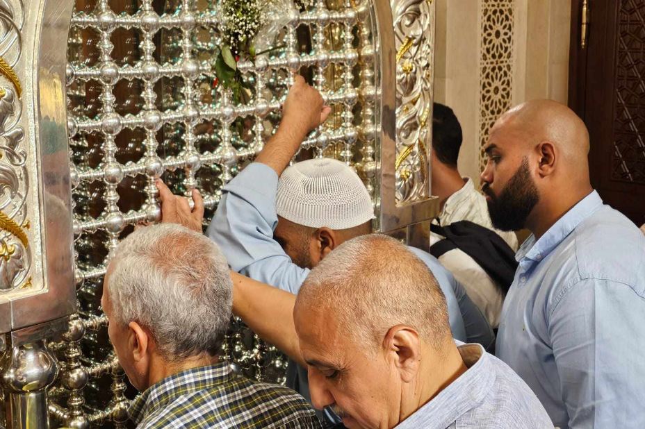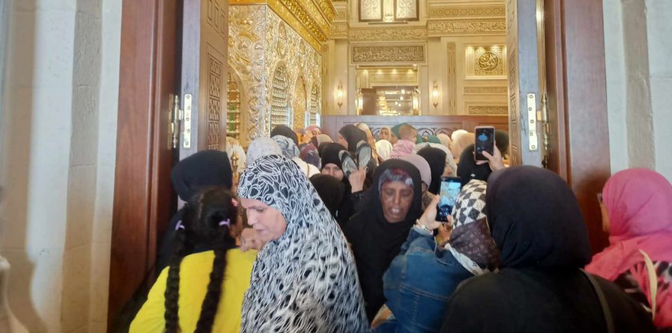 فاضت الدموع شوقًا، وعلت الزغاريد فرحًا وسعدًا، مع الخطوات الأولى ببلاط الوديعة الصابرة محبوبة المصطفى، بعد طول غياب وحرمان انشقت له القلوب لهفة.