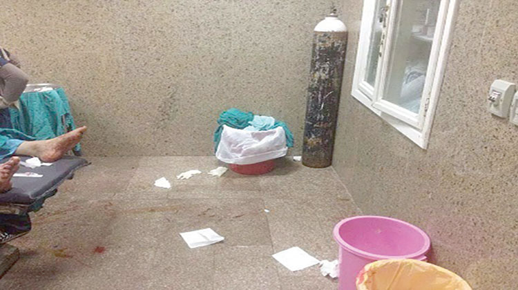 وعقب ذلك انتظار تجهيز غرفة العمليات كل ذلك وهو ينزف ورجله مهددة بالبتر.