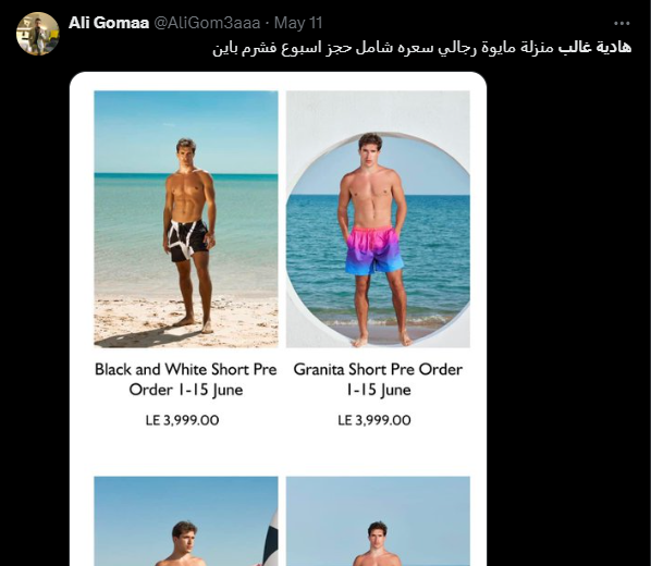 وهذا العام تتكون مجموعة مايوهات هاية غالب لصيف 2024، قسم خاص للرجال والمكون من 5 ألوان واستيلات مختلفة، وأسعارها تصل إلى 4 آلاف جنيه.
