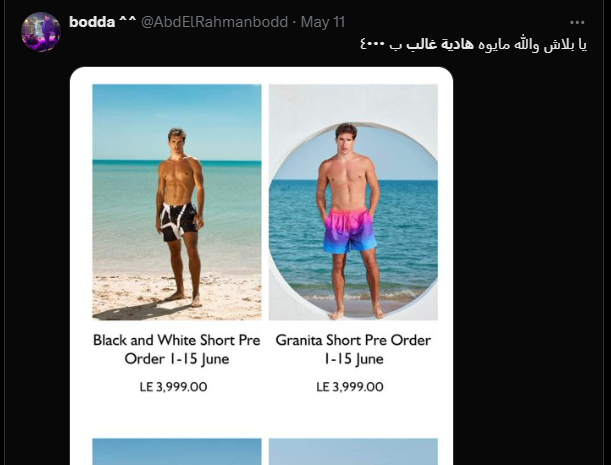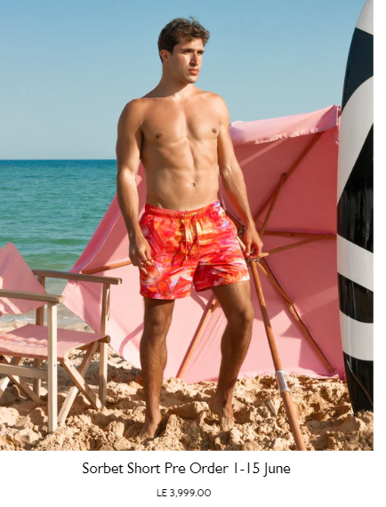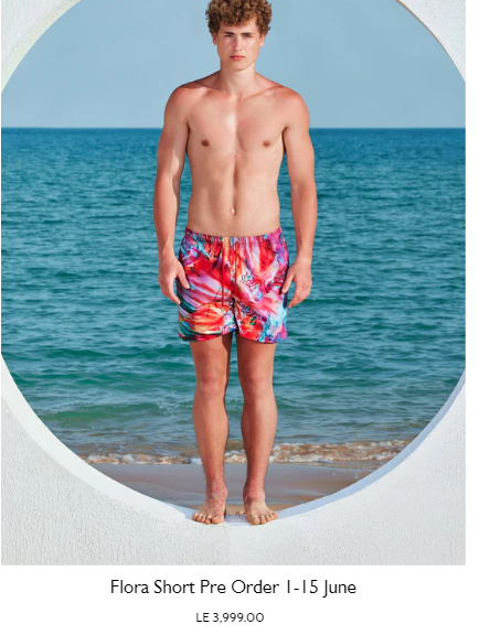 يبلغ سعره 3,999.00 ألف جنيه، وهو عبارة عن شورت من القماش سريع الجفاف وألوانه تشبه ألوان الفاكهة الاستوائية.