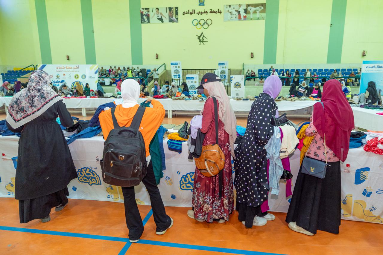 نظم صندوق تحيا مصر، معرض للملابس الجديدة ضمن مبادرة "دكان الفرحة" في جامعة جنوب الوادي بمحافظة قنا، ليوفر 15 ألف قطعة من الملابس الجديدة والأحذية والاكسسوارات.