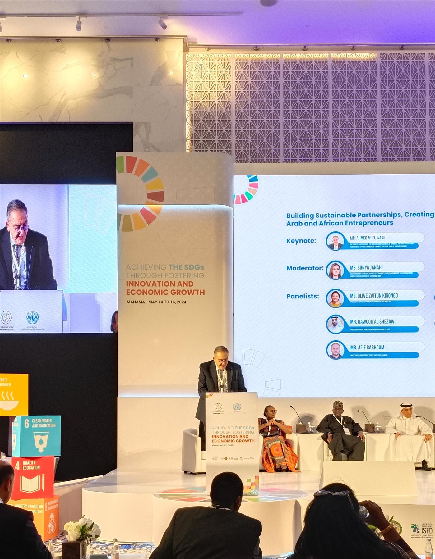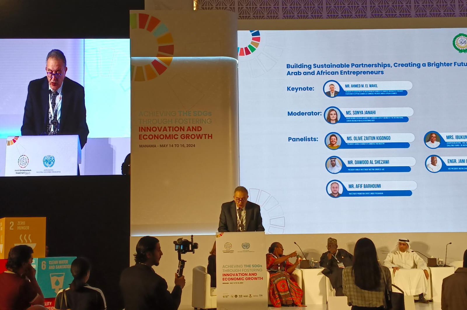 قال أحمد الوكيل رئيس الاتحاد العام لغرف التجارية خلال المؤتمر العربى الافريقى بالبحرين: اتحدث إليكم باسم اتحادين، اتحاد غرف التجارة والصناعة والزراعة والمهن الأفريقية الذى أشرف برئاسته، وكذا كأمين عام لاتحاد الغرف العربية، وكلاهما الممثل الرسمي لاتحادات الغرف الوطنية فى عموم القارة الافريقية والوطن العربى، وعشرات الملايين من اعضائهم، دعامة النماء والتنمية، مجتمع المال والأعمال والمهنيين فى شتى المجالات.