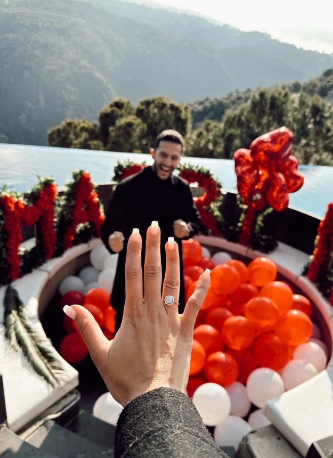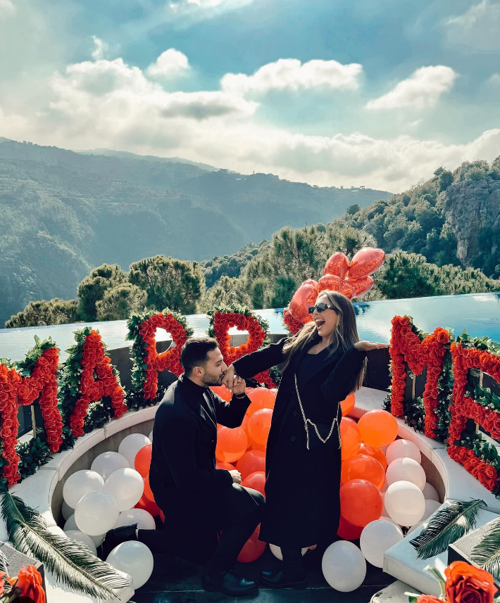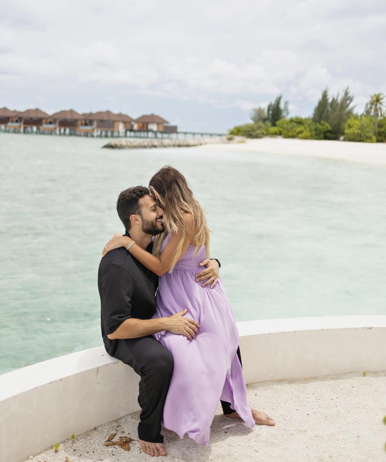 ونشرت لينا الطهطاوي صور رومانسية وسط الطبيعة الخلابة من شاطيء ساحر اللون مع الأشجار والنخيل، وإرتدت فستان لافندر مكشوف الصدر والجانبين، ومحدد الخصر؛ ليعكس أنوثتها وقوامها الممشوق، وإرتدى زوجها قميص وبنطال باللون الأسود مع نظارة شمسية سوداء.