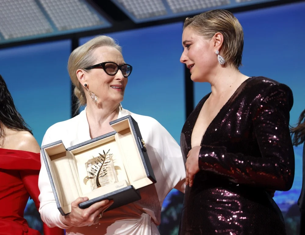 لم تتمكن ميريل ستريب من حبس دموعها لحظة تسلمها السعفة الذهبية من جولييت بينوش، وسط تصفيق الجمهور، بينما كانت تشاهد المقاطع الاستعادية لمسيرتها  الفنية وتستعيد ذكريات لا تُنسى بحسب وصفها.