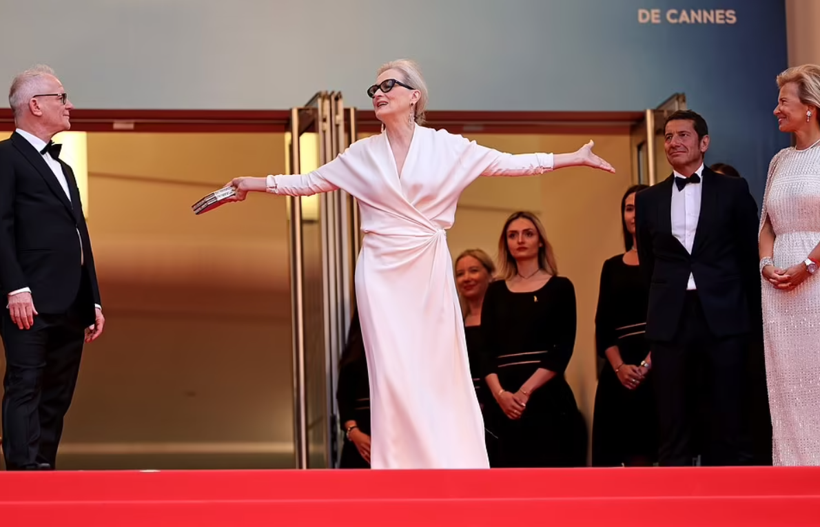 اكتمل رونق الحفل بلقاء نجوم ومشاهير العالم في حب "السعفة الذهبية الفخرية"، تلك الجائزة التي كانت من نصيب النجمة الأميركية ميريل ستريب، التي تألقت على السجادة الحمراء كالعروس بإطلالة فخمة مزجت بين الأنوثة والرقة في آن، وجاء ذلك تكريمًا وتمجيدًا لتاريخها السينمائي الحافل بعدد ضخم من الأعمال الفنية العظيمة.