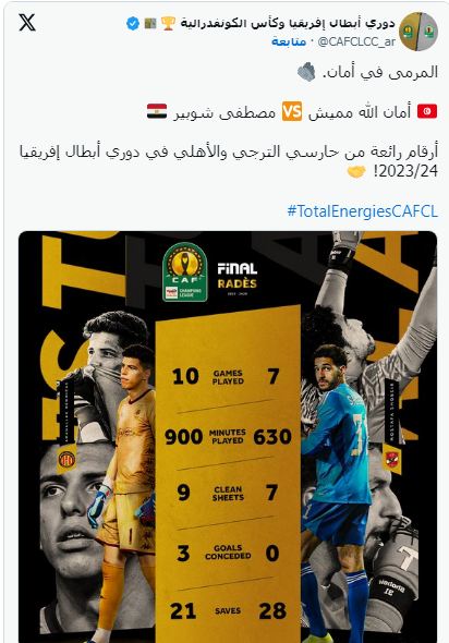 بينما في المقابل يقدم الحارس التونسي صاحب الـ 20 عاما أمان الله مميش، موسم رائع مع فريق الترجي على المستويين المحلي والإفريقي ليقود فريقه لنهائي دوري أبطال أفريقيا.