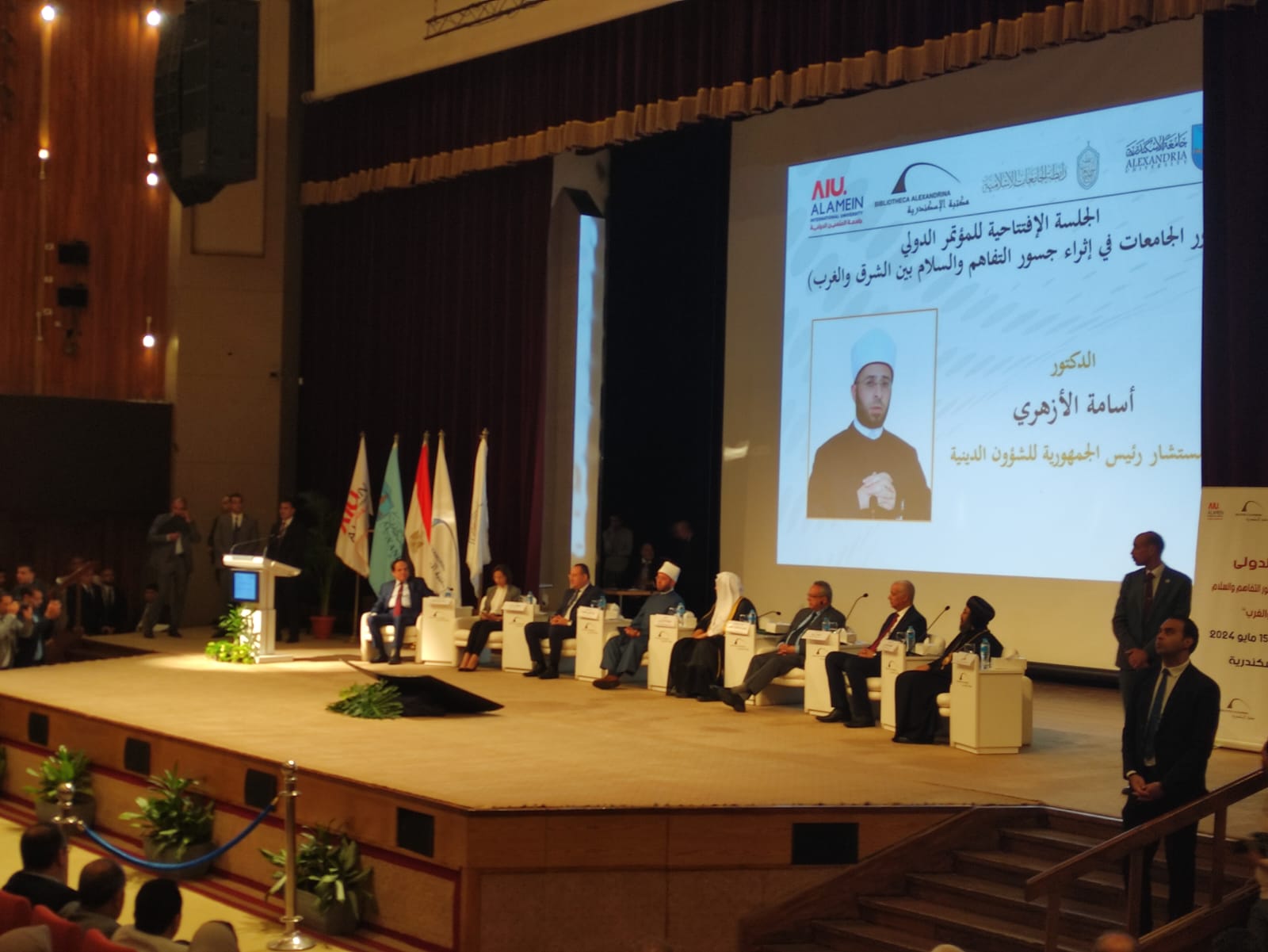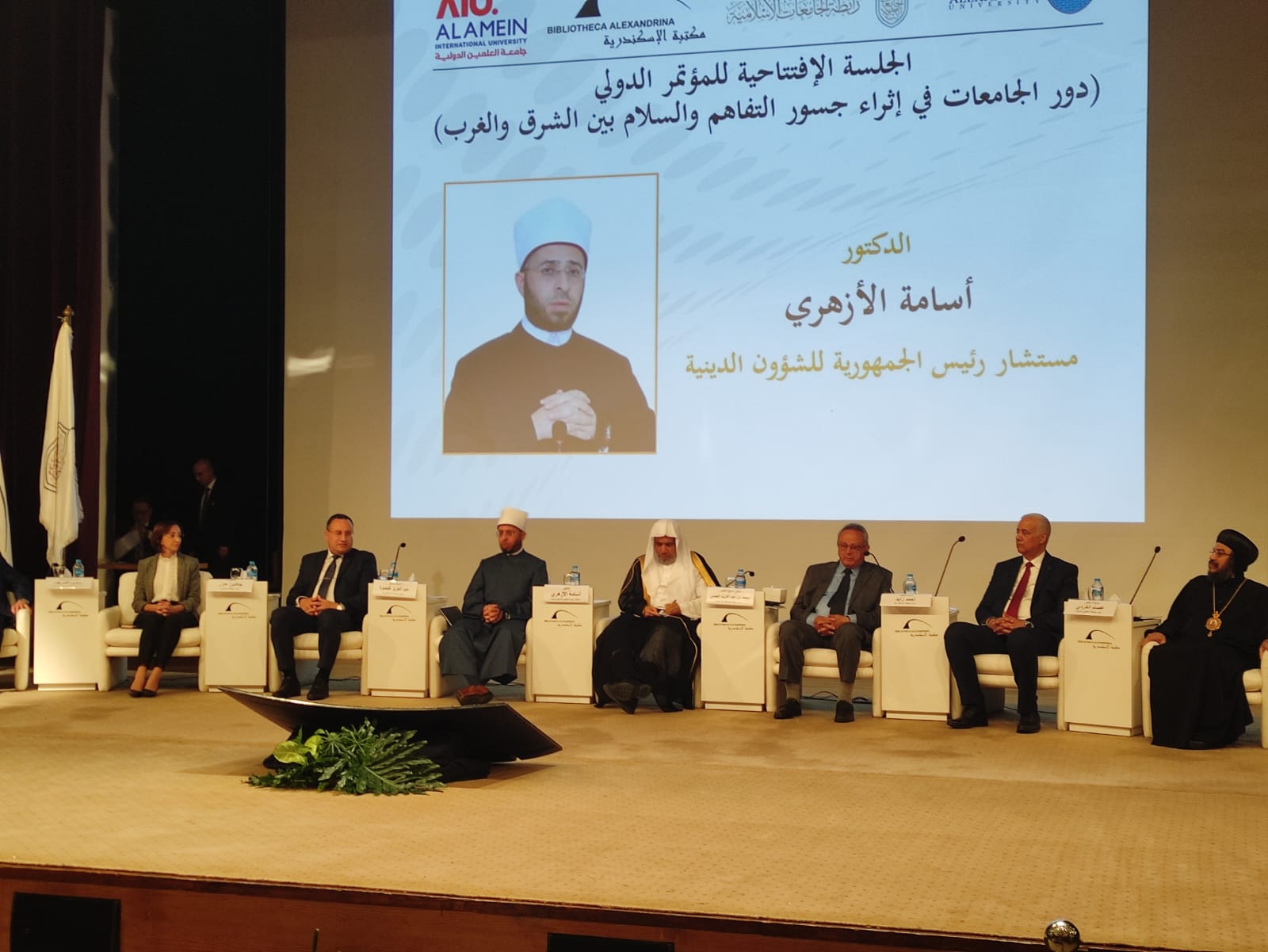 شارك فضيلة الدكتور أسامة الأزهري مستشار رئيس الجمهورية للشئون الدينية وأحد علماء الأزهر الشريف في المؤتمر الدولي: " دور الجامعات في إثراء جسور التفاهم والسلام بين الشرق والغرب" بحضور الدكتور عبد الكريم العيسى الأمين العام لرابطة العالم الإسلامي، ورئيس رابطة الجامعات الإسلامية، والأستاذ الدكتور أحمد زايد مدير مكتبة الإسكندرية، والدكتور عبد العزيز قنصوة رئيس جامعة الإسكندرية، وعدد من السفراء وأعضاء مجلسي النواب والشيوخ ورؤساء الجامعات ونوابهم، وعلماء الأزهر ، ورجال الكنيسة.