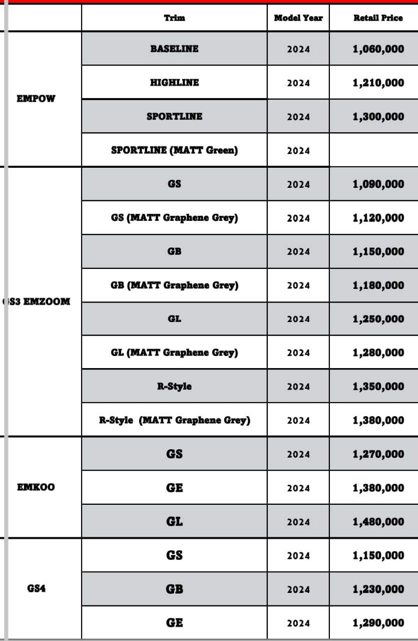 أخطرت شركة جميل موتورز، وكيل سيارات GAC، شبكة موزعيها المعتمدين بالأسعار الرسمية الجديدة لطرازات العلامة الصينية الفاخرة. وشملت القائمة أسعار سيارات GAC المتوافرة في السوق المصرية 4 طرازات هي: "GS3 EMZOOM-EMKOO-EMPOW-GS4".