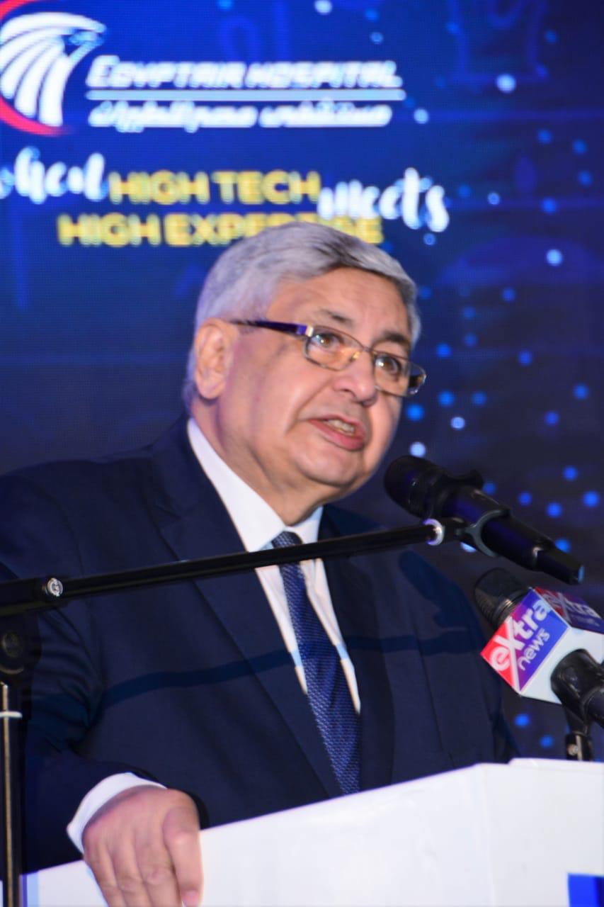 وفى كلمته أكد الدكتور محمد عوض تاج الدين، مستشار رئيس الجمهورية لشئون الصحة والوقاية على أن مصر تمتلك الإمكانيات والتجهيزات اللازمة ولديها كوادر طبية متميزة تؤهلها في التعامل بشكل بارز مع ملف منظومة السياحة العلاجية مما يجعلها من أهم المقاصد السياحية العالمية في هذا المجال، مؤكدًا بأن مصر من أوائل الدول التي حرصت على توطين الذكاء الاصطناعي في كافة المجالات؛ ومن ثّم الاعتماد عليه بشكل فعال في المجال الطبي، فضلًا عن تزويد المنظومة الطبية بالأجهزة الرقمية  للفحوصات الطبية من خلال استخدام الأشعات بكافة أنواعها كالمقطعية والرنين والإيكو، هذا إلى جانب كفاءة الدور المؤسسي والطبي الذي تمتلكه مصر من مؤسسات وكوادر بشرية وأطقم طبية وتمريض مؤهلة في كافة التخصصات؛ مضيفًا بأن الدولة المصرية لديها إمكانات وقدرات تساعدها في أن تحصل على نصيبها الذي تستحقه من عائدات منظومة السياحة العلاجية العالمية؛ مشيرًا إلى أن مستشفى مصر للطيران لديها إمكانيات وكوادر بشرية متميزة وأجهزة ومعدات طبية حديثة في كافة التخصصات تضاهي المستويات العالمية، فضلا عن دور شركة مصر للطيران كناقل وطني وشريك قوى يساعد في جذب أكبر عدد من السياح مما يدعم حركة السياحة العلاجية،، مثمنًا الدور الحيوي والداعم لمستشفى مصر للطيران في هذا المجال،، متمنيًا لهم مزيد من التقدم والنجاحات.