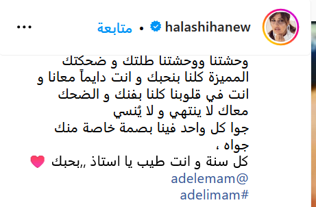 كل سنة و انت طيب يا زعيم عشت طفولتي لحد ما كبرت انت نجمي المفضل علي الإطلاق ، وحشتنا ووحشتنا طلتك و ضحكتك المميزة كلنا بنحبك و انت دايماً معانا و انت في قلوبنا كلنا بفنك و الضحك معاك لا ينتهي و لا يُنسي، جوا كل واحد فينا بصمة خاصة منك جواه ، كل سنة و انت طيب يا استاذ “بحبك ♥️”.