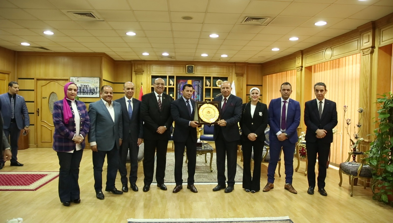 وأشاد بأوجه التعاون ومنها اعلان تشغيل نادى جامعة المنصورة وهو أول نادى رياضى بالجامعات المصرية وكذلك التعاون في استضافة المنافسات والمسابقات الرياضية بما تمتلكه الجامعة من بنية ومقومات رياضية ممثلة في القرية الأولمبية.