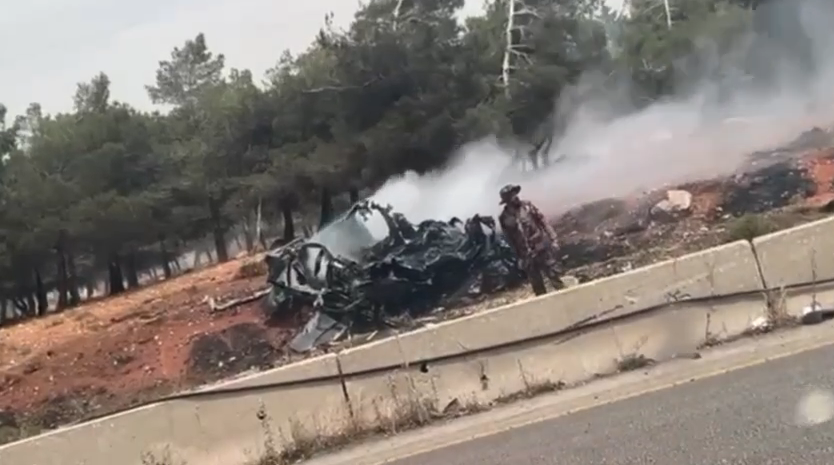 وظهر في مقطع فيديو للسيارة المستهدفة وتحولت إلى شعلة نار غير واضح معالهما.