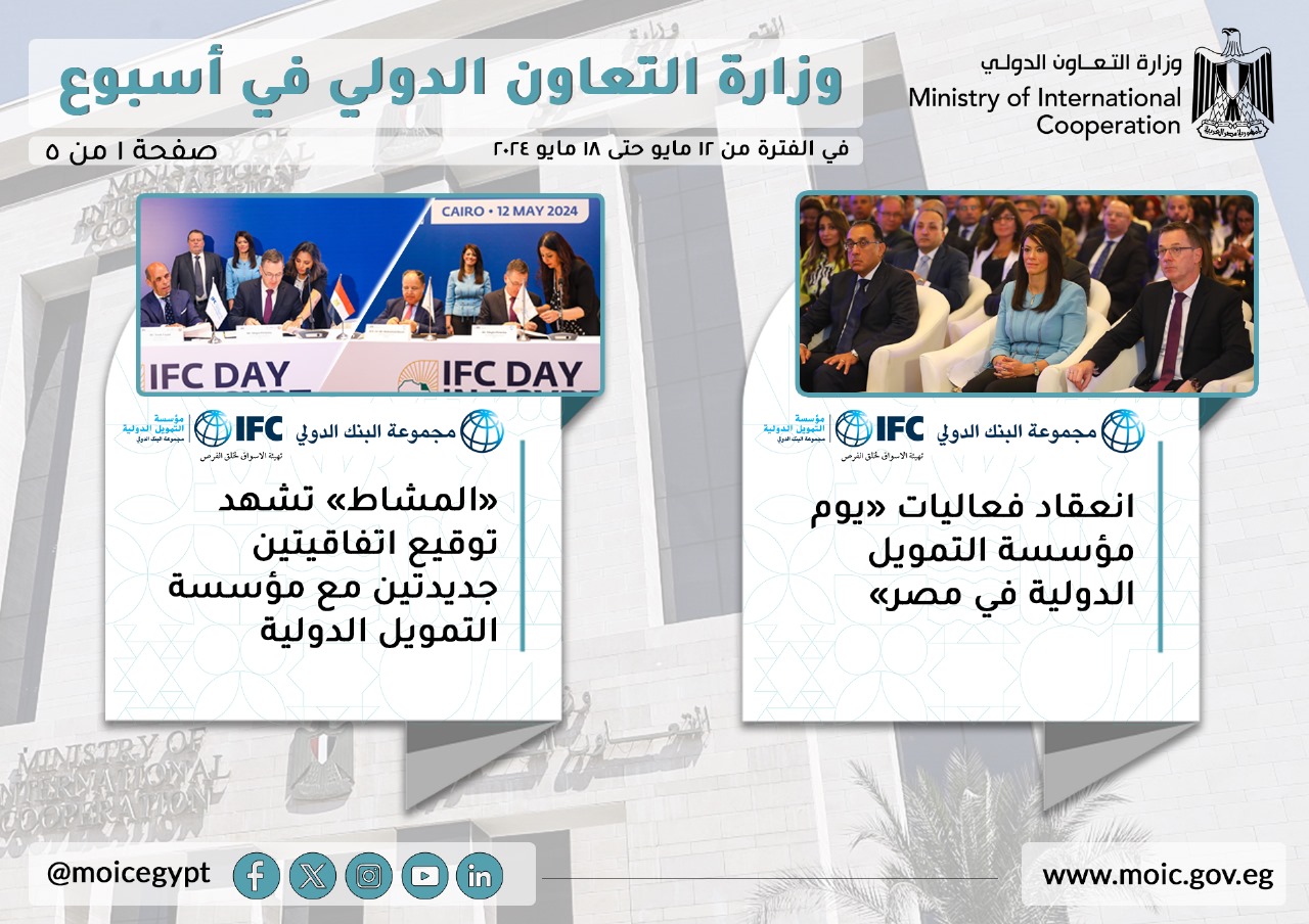انعقدت الأسبوع الماضي فعاليات «يوم مؤسسة التمويل الدولية في مصر»، الذي تم تنظيمه خلال زيارة سيرجيو بيمنتا"، نائب رئيس مؤسسة التمويل الدولية لمصر، بحضور الدكتور مصطفى مدبولي، رئيس الوزراء، حيث ألقت الدكتورة رانيا المشاط وزيرة التعاون الدولي ومحافظ مصر لدى البنك الدولي، الكلمة الافتتاحية، كما شهدت توقيع اتفاق تمويل بين مؤسسة التمويل الدولية وبنك القاهرة بقيمة 100 مليون دولار، وكذلك توقيع اتفاقية الخدمات الاستشارية مع الهيئة العامة للتأمين الصحي الشامل.