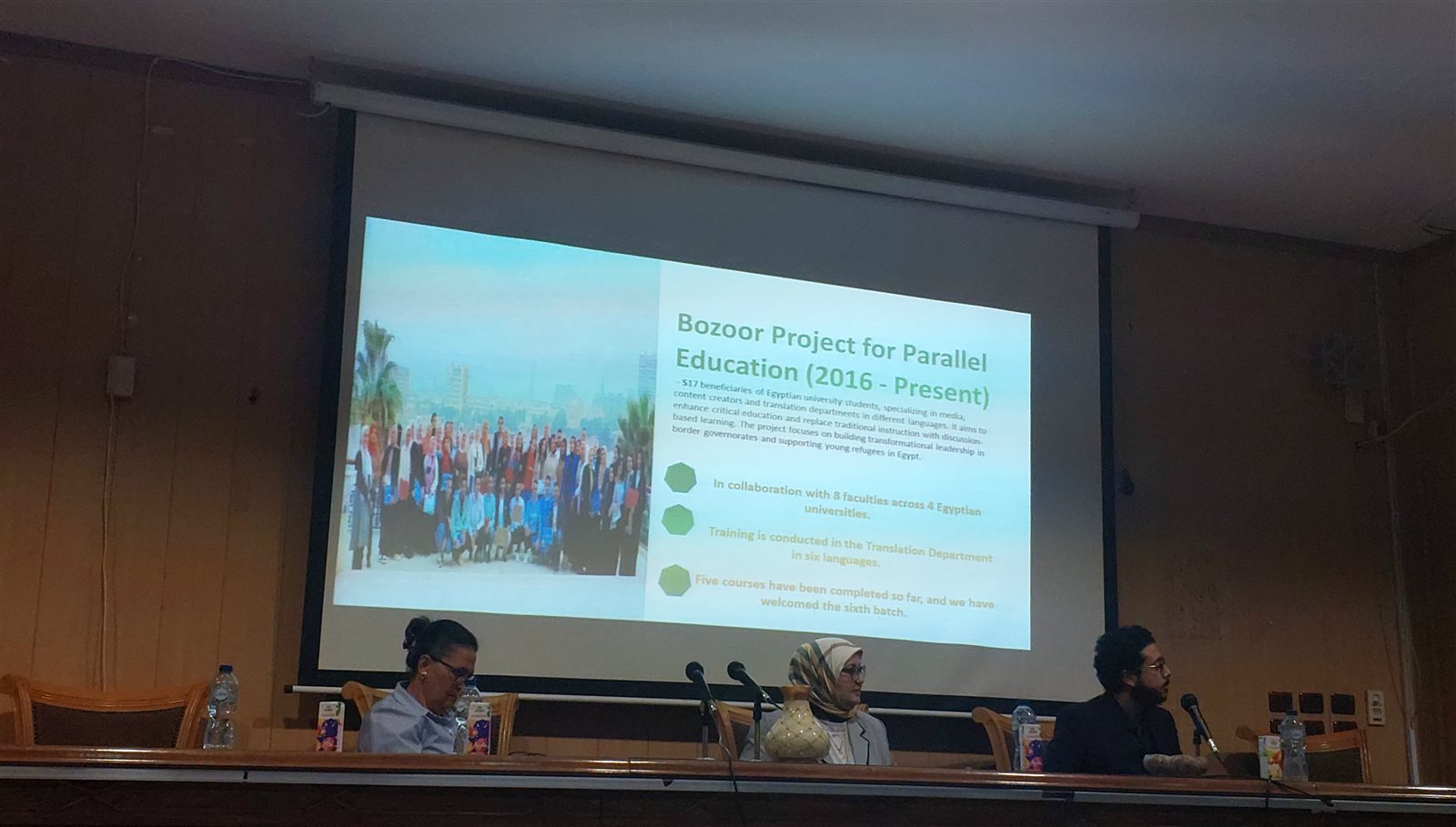مهنيًا في مجال تخصصهم، من خلال التدريب على اللغات والترجمة والعلاقات الدولية، لافتًا أنه انتهى حتى الآن من خمس دفعات بإجمالي عدد خريجين نحو ٥٦٧ كادر طلابي من دارسي الإعلام واللغات، أقسام اللغة الإنجليزية والعربية والإسبانية والفرنسية من بينهم ١٧٨ طالب من دارسي اللغات الأفريقية شعبة اللغة السواحيلية.