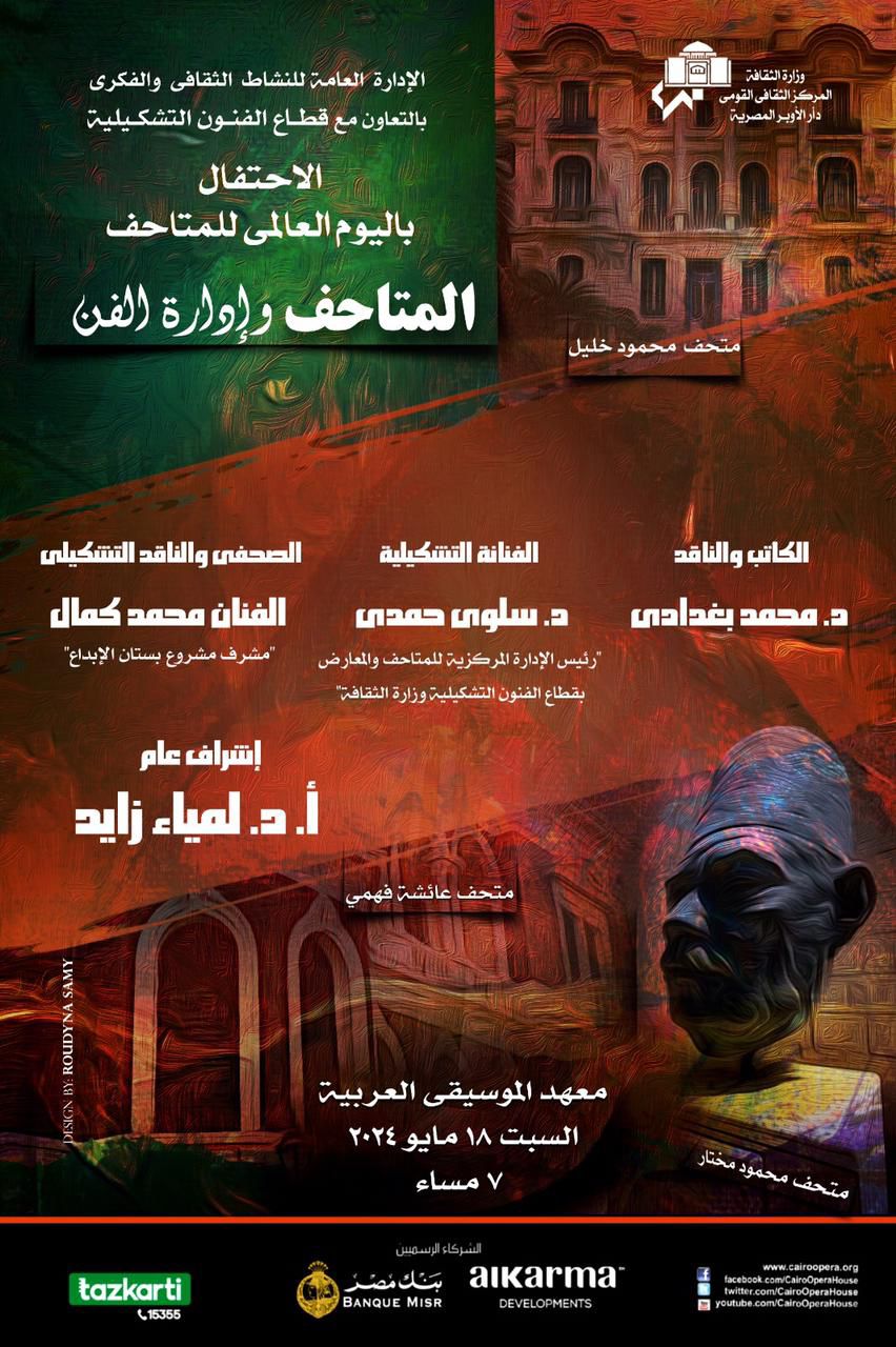 تعقد دار الأوبرا المصرية برئاسة الدكتورة لمياء زايد، ضمن نشاطها الثقافى والفكرى وبالتعاون مع قطاع الفنون التشكيلية ندوة بعنوان "المتاحف وإدارة الفن تاريخ وإبداع وحياة"، وذلك إيمانا من الثقافة المصرية بأهمية دور المتاحف فى نشر الوعى المجتمعي.