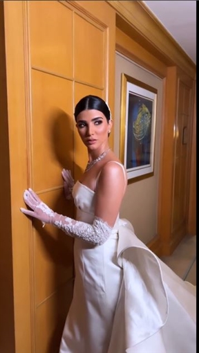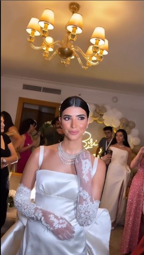 ريم سامي بفستان أبيض أنيق فى حفل خطبتها