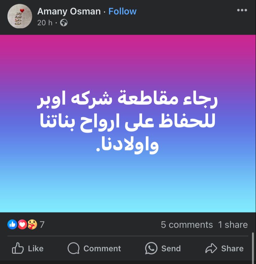 وتداول مستخدمو مواقع التواصل الاجتماعي منشورات حول مقاطعة شركات التوصيل، مطالبين بحذف تطبيق التنقل والسفر الخاص بها.