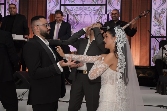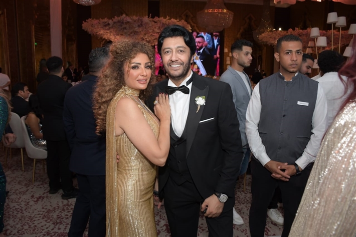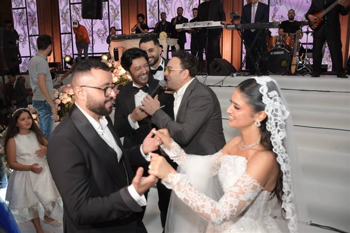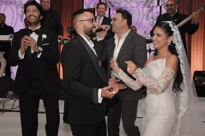 وأحيا حفل الزفاف الفنان “مصطفى قمر”بعدد من أغانيه القديمة، وسط تفاعل ورقص المدعوين والعروسين معه.