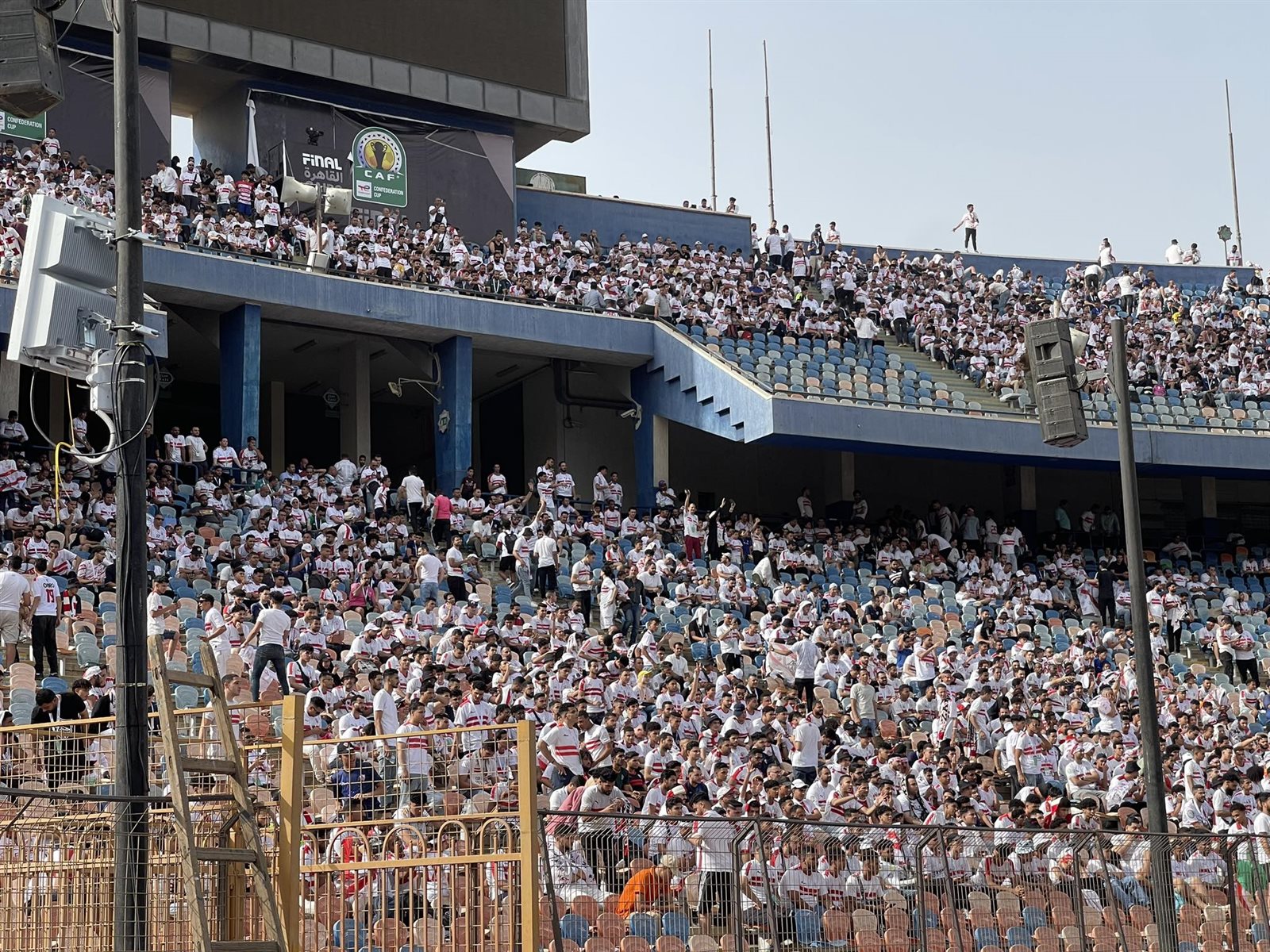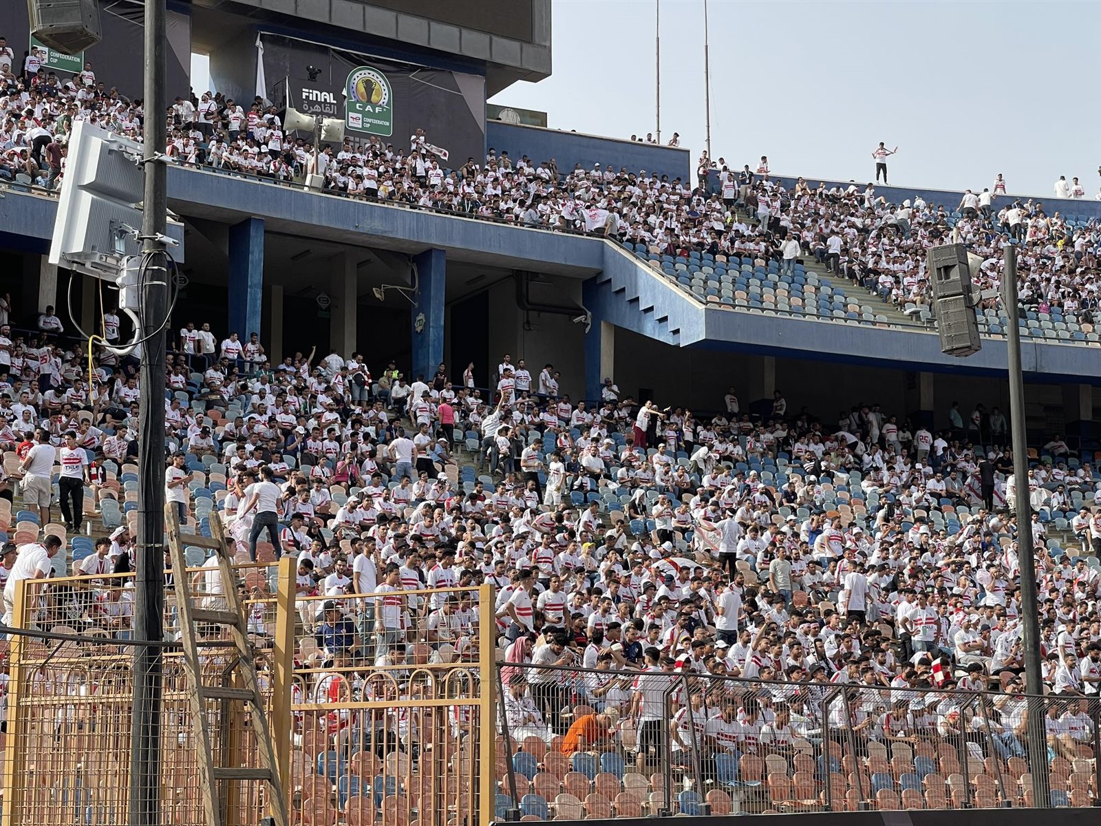 وشهد استاد القاهرة توافد جماهير الزمالك إلى المدرجات، من أجل مؤازرة الأبيض قبل نهائي الكونفدرالية، من أجل حلم التتويج بالبطولة للمرة الثانية.