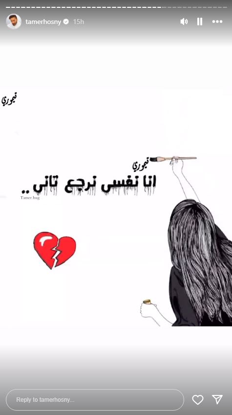 ونشر تامر صورة مرسومة ومكتوب عليها: "نفسي نرجع تاني"، وفي الخلفية مقطع من أغنيته التي تحمل نفس الإسم، وتحديدًا مقطع: " ولا عارف بعدك أعيش طب أقولك حاجة تعباني من يومها وأنا في مكاني وأنت اللي مبتجيش"، الأمر الذي فسره البعض بإنه يرغب في العودة لبسمة بوسيل ويوجه لها رسالة غير مباشرة على طريقته الخاصة، وجاء ذلك من خلال خاصية القصص المصورة "ستوري" عبر حسابه الشخصي بموقع تبادل الصور والفيديوهات "انستجرام".