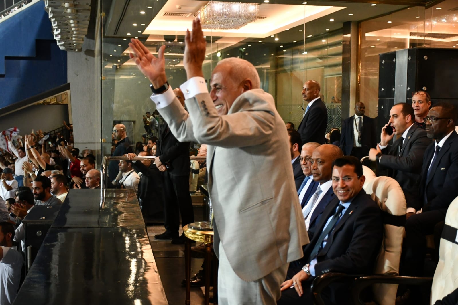 شاهد بالصور.. فرحة حسين لبيب بعد تتويج الزمالك بكأس الكونفدرالية