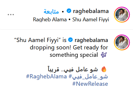 شارك الفنان اللبناني راغب علامة جمهورة بمقطع قصير من أغنيته الجديدة على صفحته الرسمية على موقع تبادل الصور والفيديوهات الأشهر استجرام ، والتي تحمل اسم "شو عامل فيي"،محمسًا جمهوره لها لحين إنطلاقها في الفترة المقبلة.