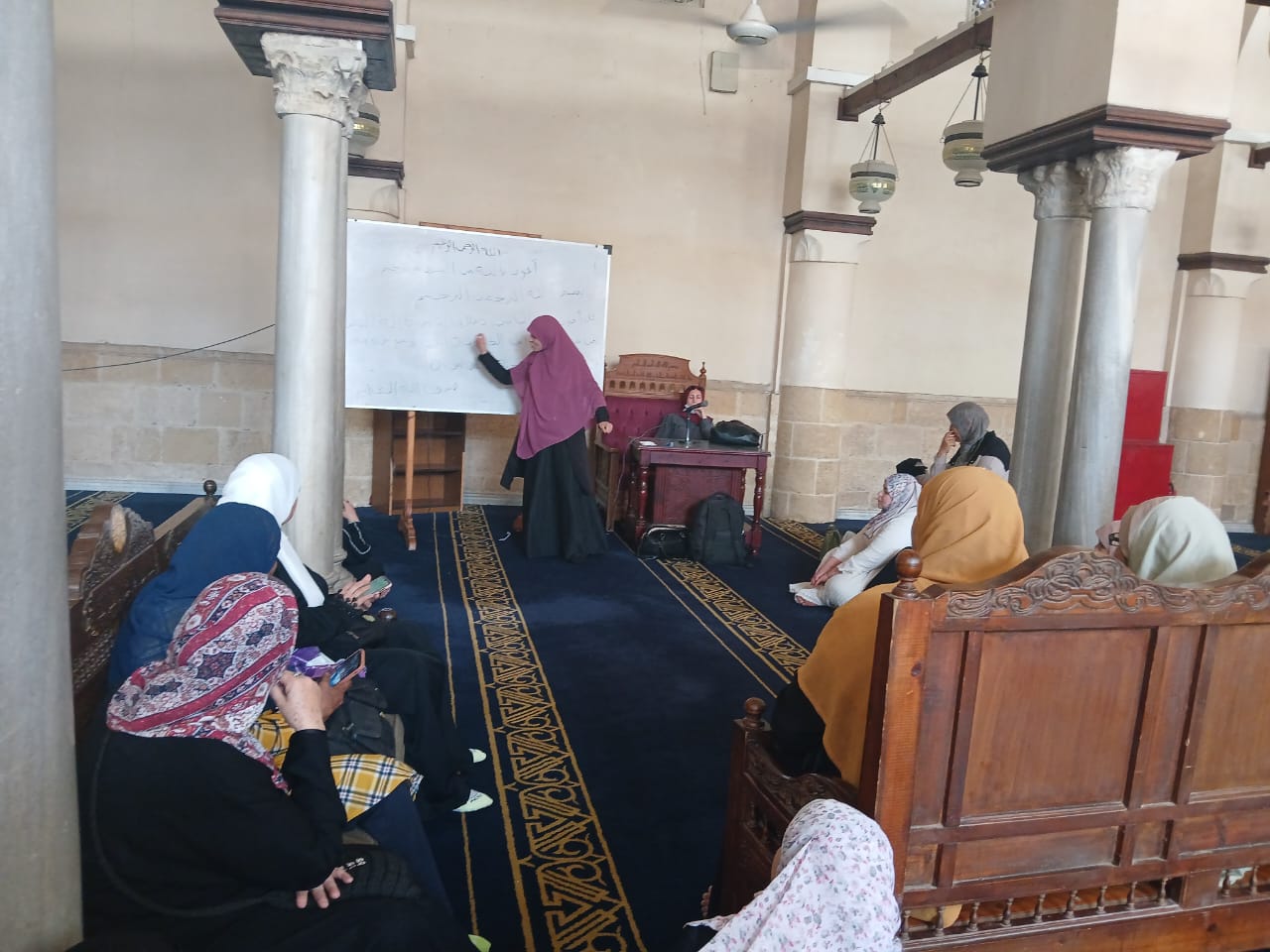 ثم قامت الواعظة بشرح معاني السورة الكريمة بلغة الإشارة وما اشتملت عليه من أسرار ومعانٍ، وشهدت المحاضرة تفاعلا كبيرا من الحضور، حيث تنوعت ما بين أسئلة وإجابات حول: هل يؤجر الأصم على  قراءة القرآن الكريم  رغم أنه يقرأ بدون صوت وبدون أيضًا أن يفهم معاني الكلمات؟ وحكم قراءة الفاتحة في الصلاة، وحكم قراءة البسملة في الصلاة؟ وأيضا ما الحكم للأصم الذي لم يتعلم الحروف فكيف له أن يُثاب من القرآن الكريم؟ وأيضًا كيف تكون صلاته، فهو لا يستطيع حفظ الفاتحة، وحكم المسلم الذي يفعل الخير لكنه تارك للصلاة، إلى غير ذلك من الأسئلة.