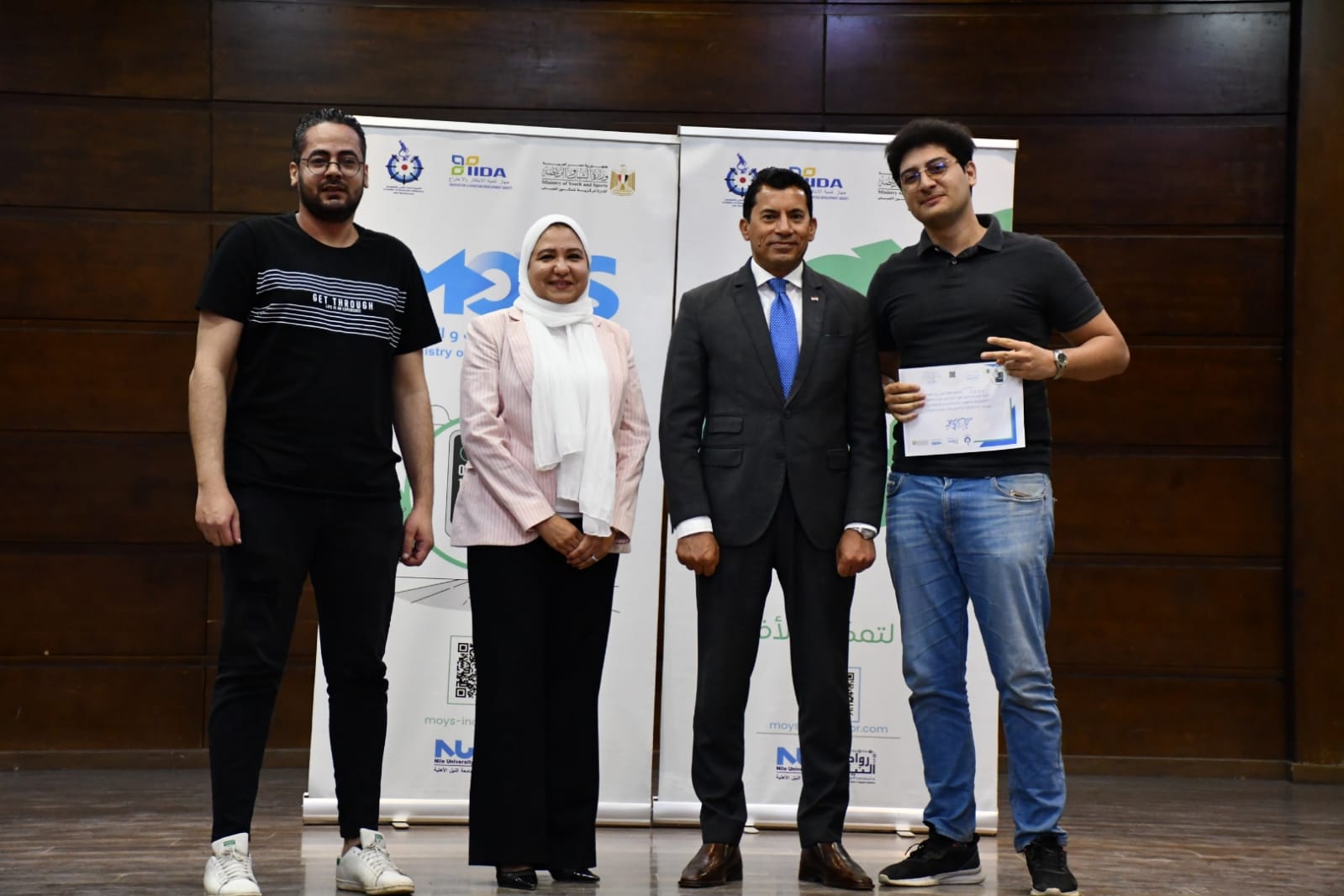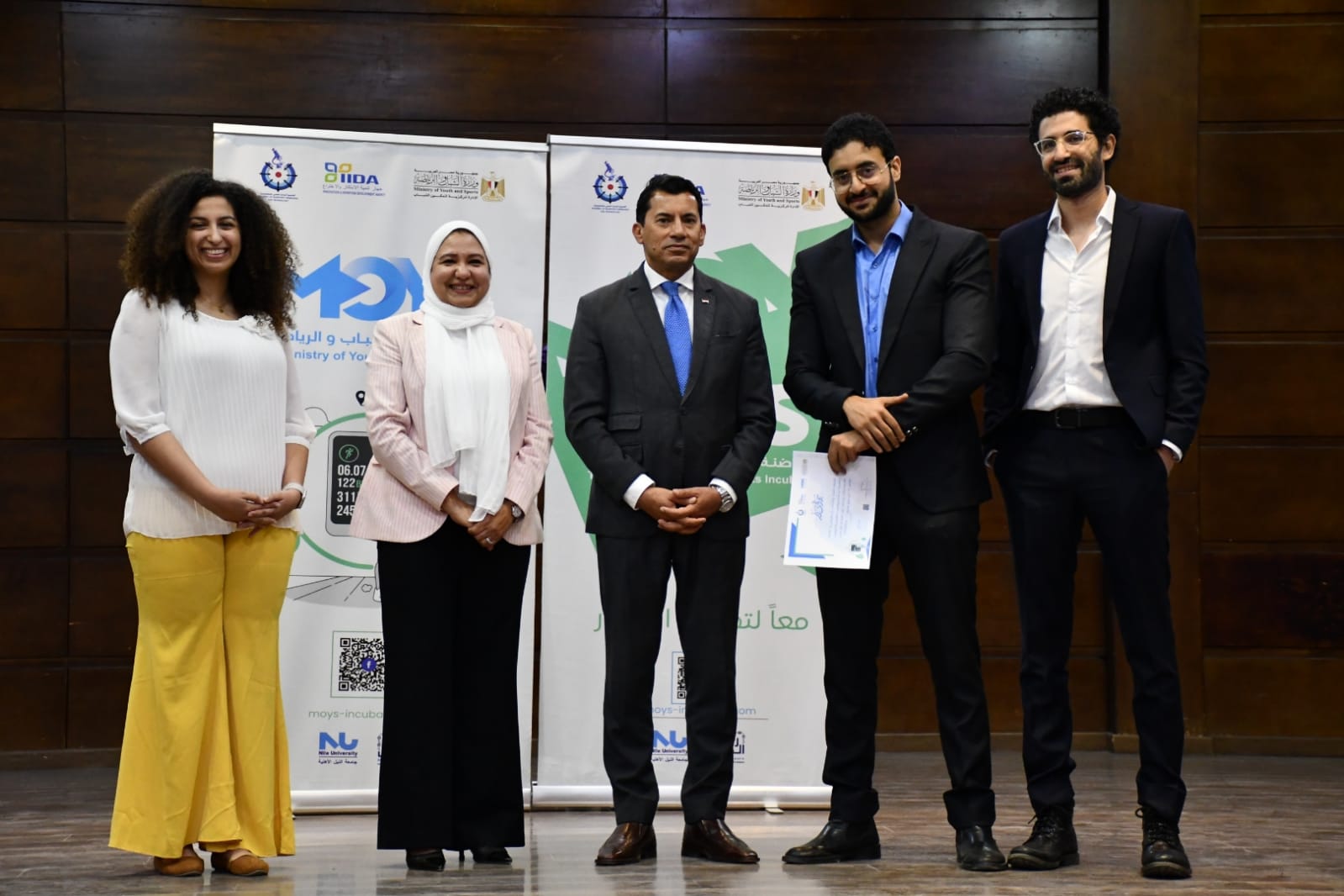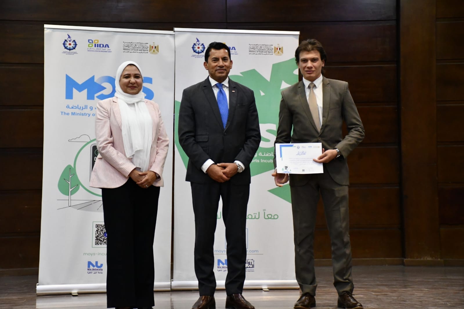 شهد الدكتور أشرف صبحي، وزير الشباب والرياضة، المؤتمر الصحفي الخاص بالإعلان عن تسليم شهادات وتكريم أصحاب الشركات الناشئة الفائزة بالاحتضان في حاضنة الأعمال الرياضية التكنولوجية MOYS بمركز شباب مدينة نصر، بالتعاون مع أكاديمية البحث العلمي والتكنولوجيا التي تمول المشروع من خلال جهاز تنمية الابتكار، وجامعة النيل الأهلية.
