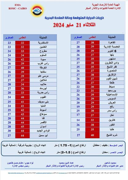ونرصد درجات الحرارة الصغرى والعظمى المتوقعة بعدد من المدن والمحافظات اليوم..