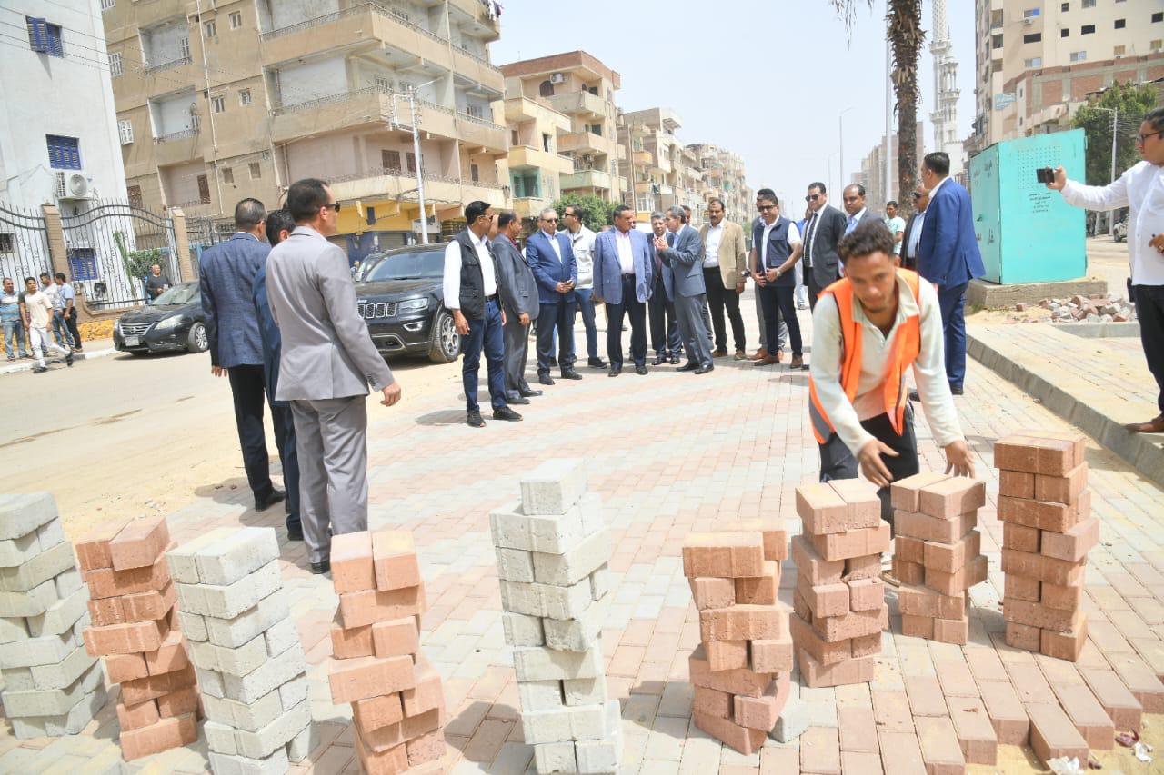 وتفقد اللواء هشام آمنة والدكتور طارق رحمي أعمال رصف شارع بورسعيد وشارع الجيش فيتم فرد وتشغيل طبقة السن وتركيب البلدورات بطول 900 متر وعرض 7 أمتار طول لكلا من الشارعين.