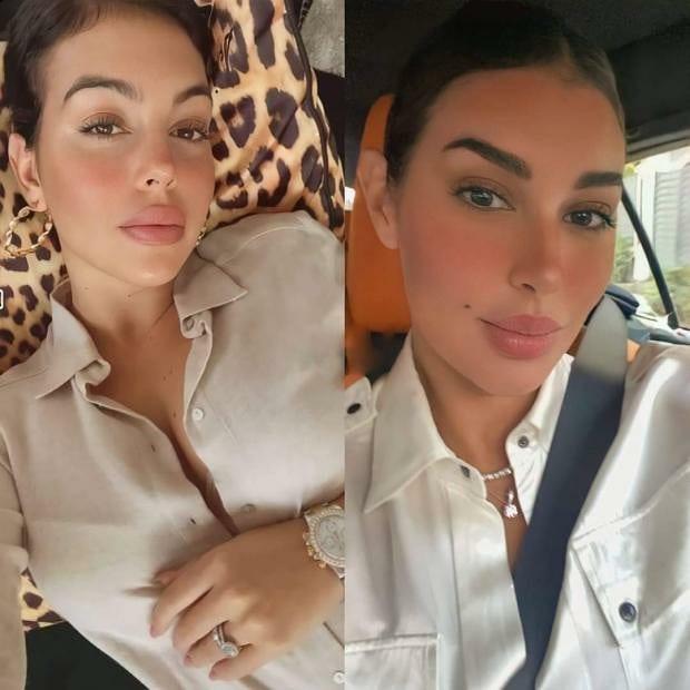 أما هذه الصورة ظهرت " صبري " بقميص باللون البيج، ووضعت مكياجاً ناعماً، وقامت بربط خصلات شعرها شكل الكعكه، وهذا ما فعلته جورجينا فى صورة سابقة لها.