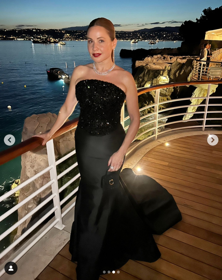 وسرقت الإعلامية ريا أبي راشد الأنظار خلال حضورها مهرجان كان، مرتدية فستان ساحر، مصنوع من قماش الكريب حمل توقيع المصمم جورج شقرا، وجاء بصيحة الكب المكشوف من الأكتاف، وبقصة عالية عند الصدر، وينسدل باتساع مع شق جانبي عالٍ، ومطرز بحبيبات براقة؛ ليعكس أنوثتها وجمالها الساحر.