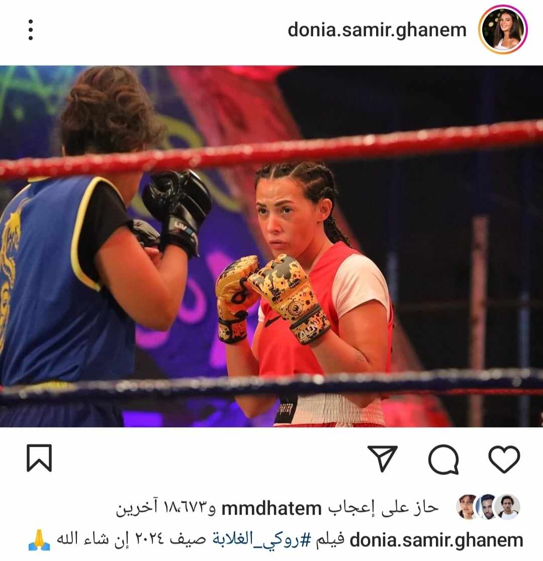 نشرت دنيا سمير غانم صورة لها وهي تمارس رياضة الملاكمة، وذلك عبر حسابها الرسمي على موقع تبادل الصور والفيديوهات "إنستجرام"، وذلك بعدما تم تغير اسم الفيلم من "الجارداية" إلى روكي الغلابة.
