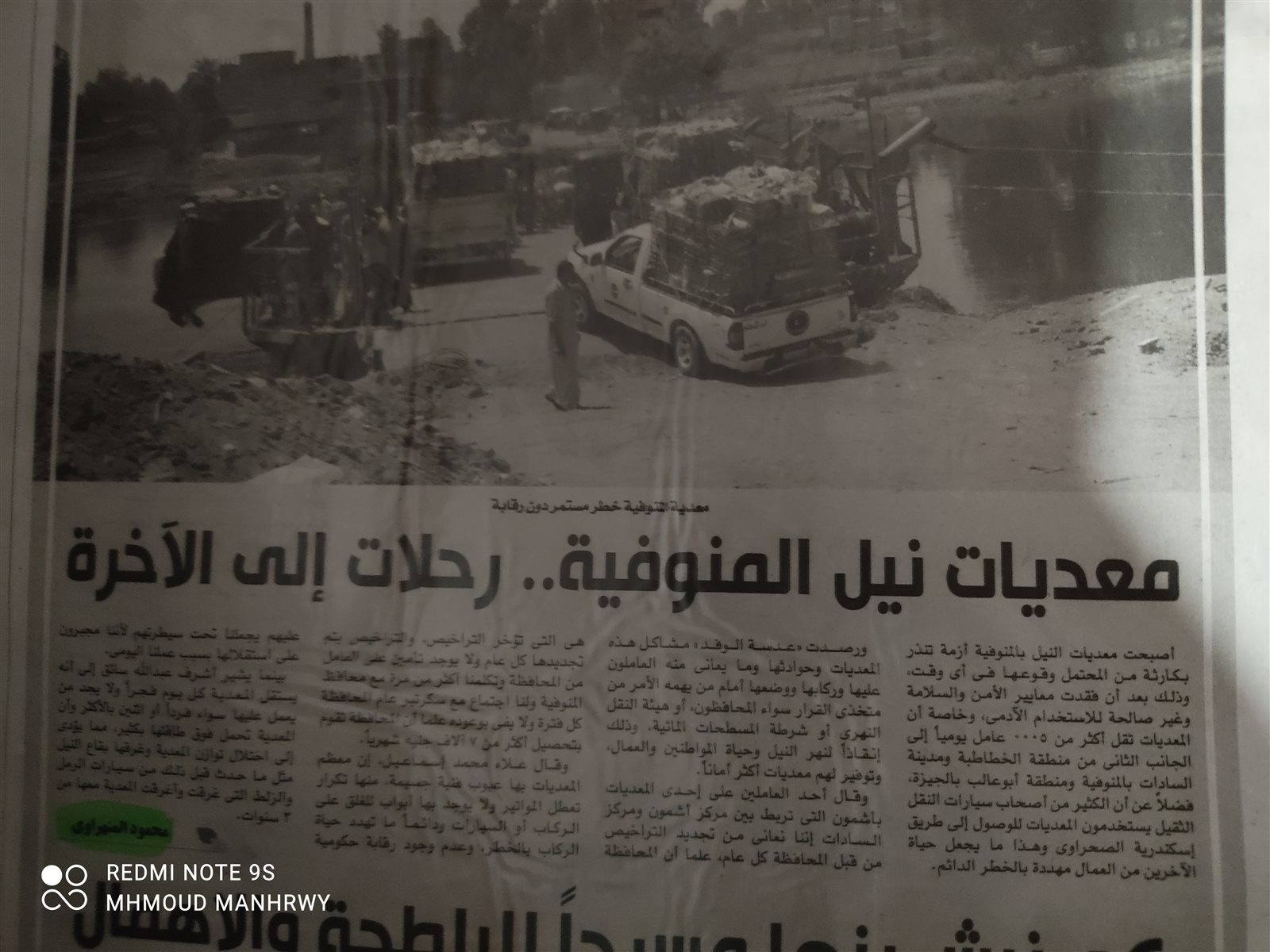 معديات نيل المنوفية.. رحلة الآخرة - جريدة الوفد عام 2015