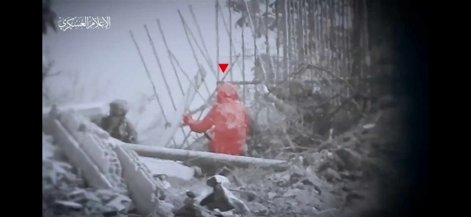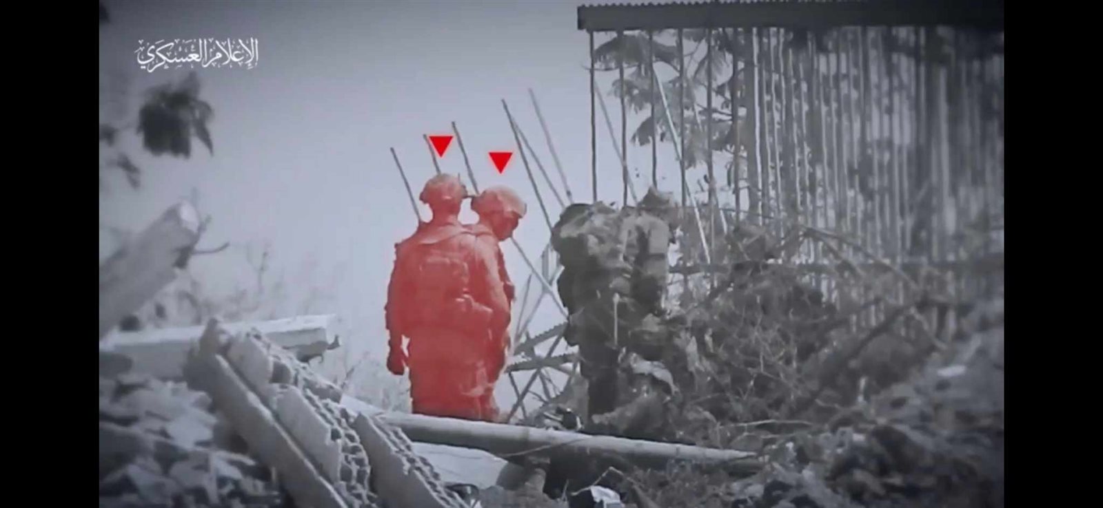 وظهر في الفيديو الذي نشره الإعلام العسكري، إصابة الجنود الإسرائيليين بدقة وإسقاطهم أرضًا ببندقية القنص .