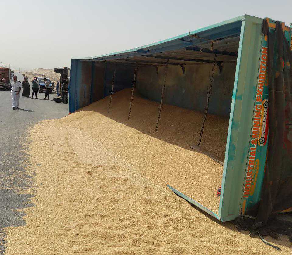 إنقلاب مقطورة محملة 92 طن قمح بالمنيا