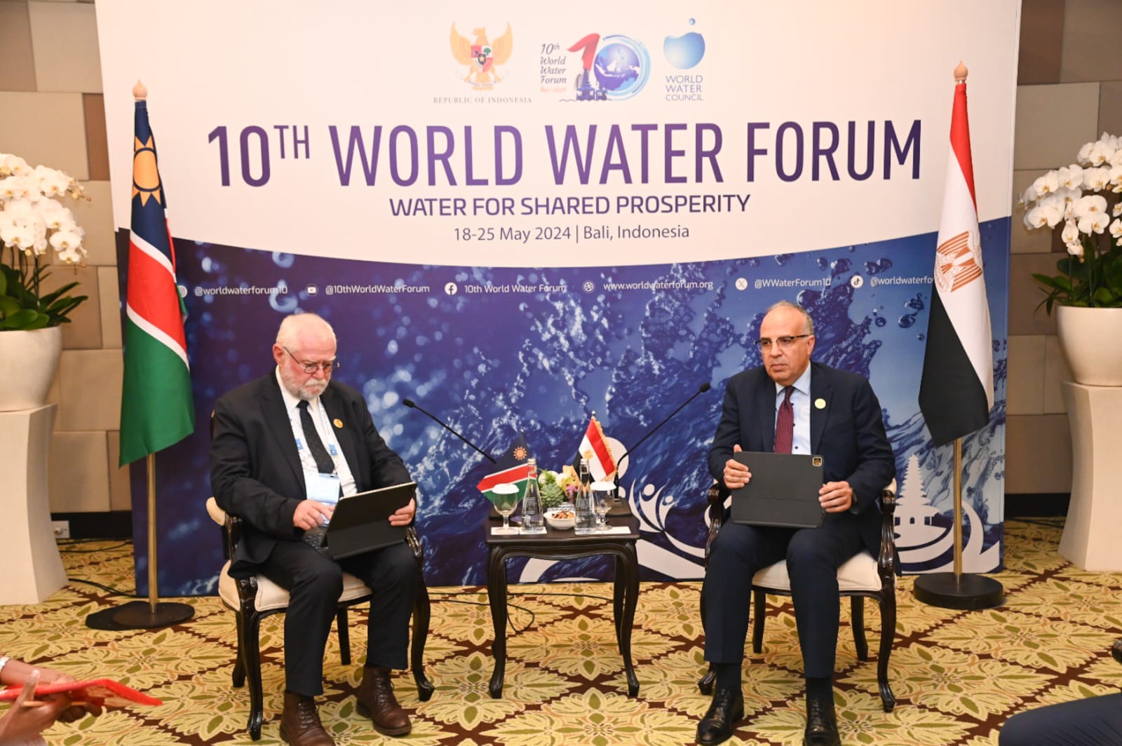 وذلك خلال لقاءه كارل جوستاف وزير الزراعة والمياه والأراضي الناميبي ورئيس مرفق المياه الافريقي، على هامش فعاليات المنتدى العالمي العاشر للمياه، لبحث تعزيز التعاون بين البلدين فى مجال المياه وتبادل الآراء حول أولويات مشروعات المياه القابلة للتمويل في القارة الإفريقية .