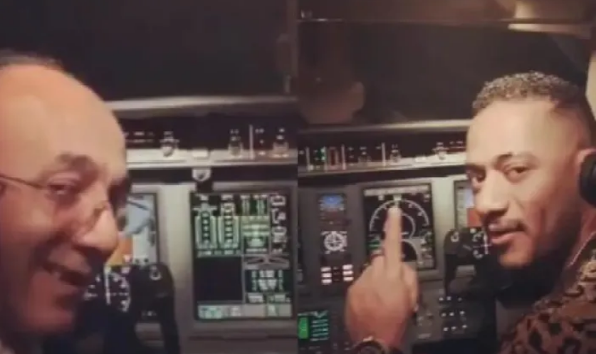 نشر الفنان محمد رمضان، مقطع فيديو عبر حساباته الرسمية بمواقع التواصل الاجتماعي، يظهر فيها من داخل كابينة طائرة يقودها أشرف أبواليسر.