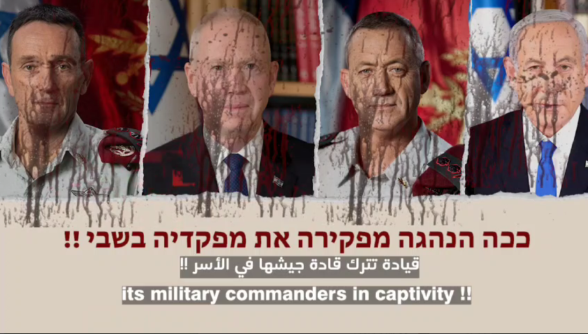نشرت المقاومة الفلسطينية حماس، فيديو جديد للأسرى الإسرائيليين لديها، بعنوان "قيادة تترك قادة جيشها في الأسر" “ الوقت ينفذ حكومتكم تكذب”.