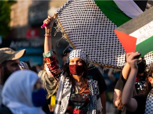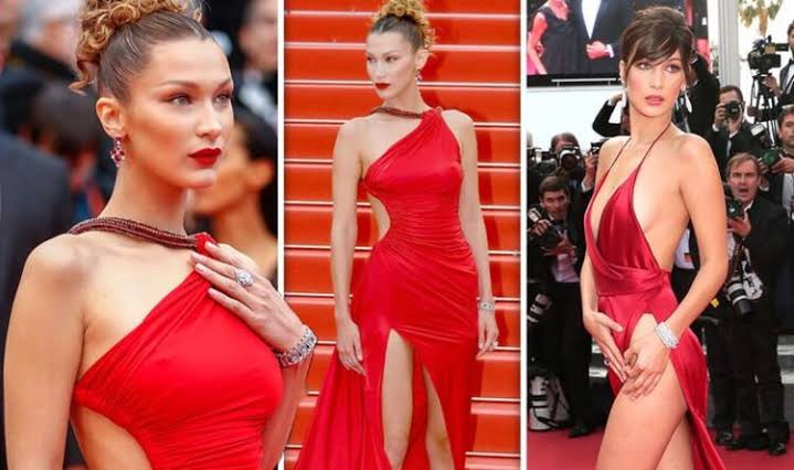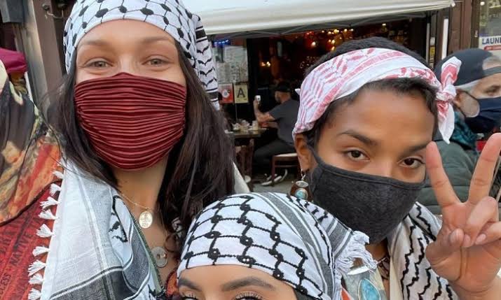 تحرص بيلا حديد النجمة الأمريكية من أصل فلسطيني على ظهورها المتميز في المهرجانات السينمائية، ولفتت الأنظار في أحدث ظهور لها في مهرجان كان السينمائي، بفستان شكل الكوفية الفلسطينية؛ لتعلن عن دعمها المستمر للقضية دون خوف وبكل جراءة، وتميز بلونه الأحمر مع الأبيض، وبعض الطيات في نهايته.