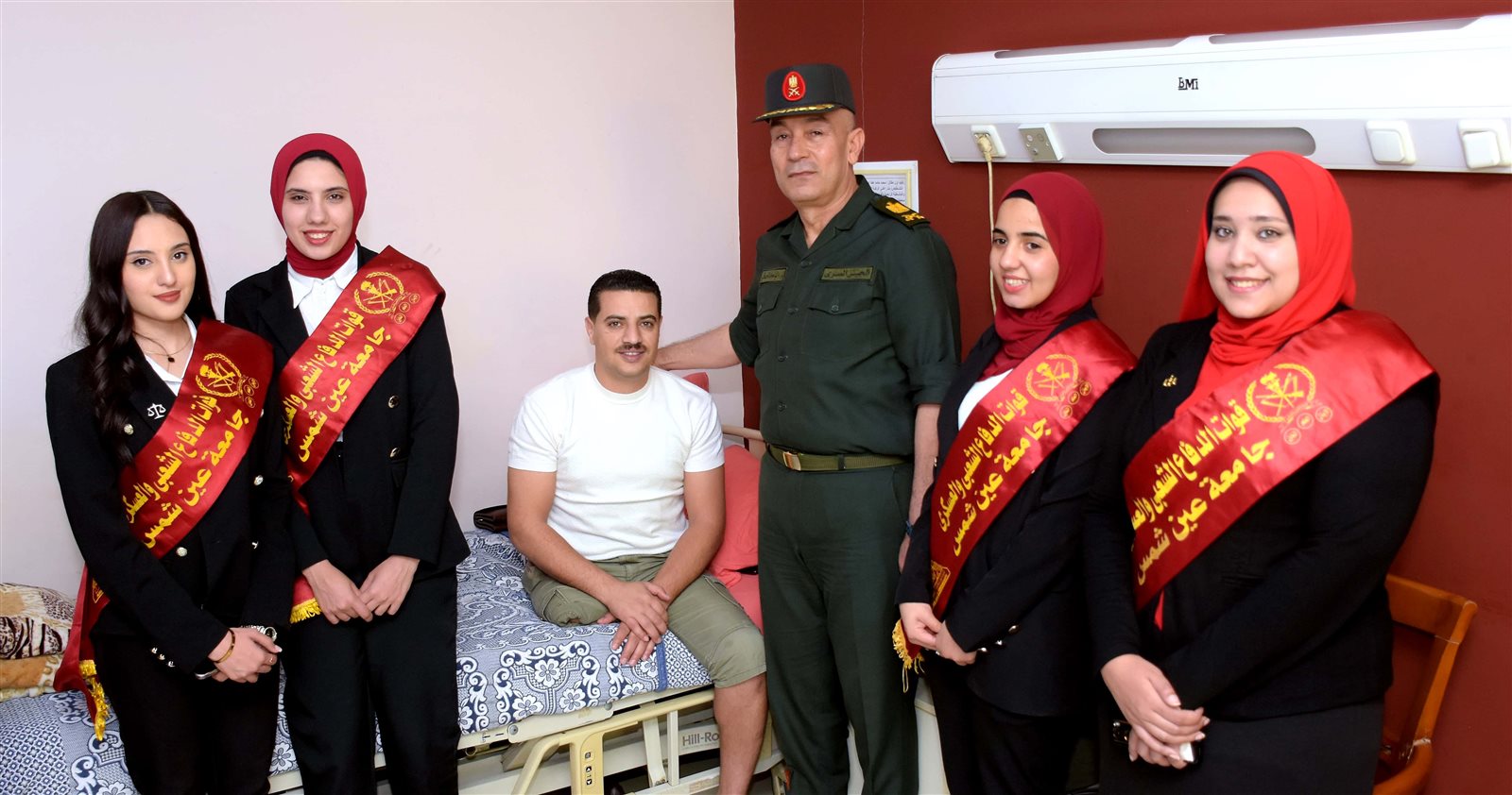 كما قام قائد قوات الدفاع الشعبى والعسكرى يرافقه مجموعة من طلبة جامعة عين شمس بزيارة عدد من الضباط وضباط الصف والجنود من أبطال القوات المسلحة الذين أصيبوا أثناء آدائهم لمهامهم بمستشفى الحلمية العسكرى للعظام والجراحات التكميلية ، وذلك تقديراً لما قدموه من تضحيات فى سبيل وطنهم الغالى من أجل حماية الوطن وصون مقدساته .