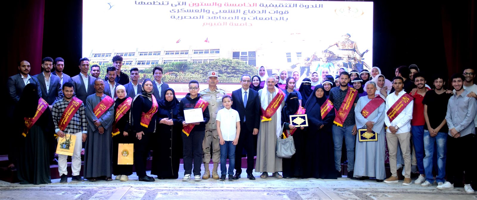 فى إطار نشر الوعى الثقافى والوطنى نظمت قيادة قوات الدفاع الشعبى والعسكرى ندوتين تثقيفتين بجامعتى بنها والفيوم لإلقاء الضوء على المخاطر والتحديات التى تواجه الشباب والدور الذى تقوم به الدولة فى مختلف القطاعات .