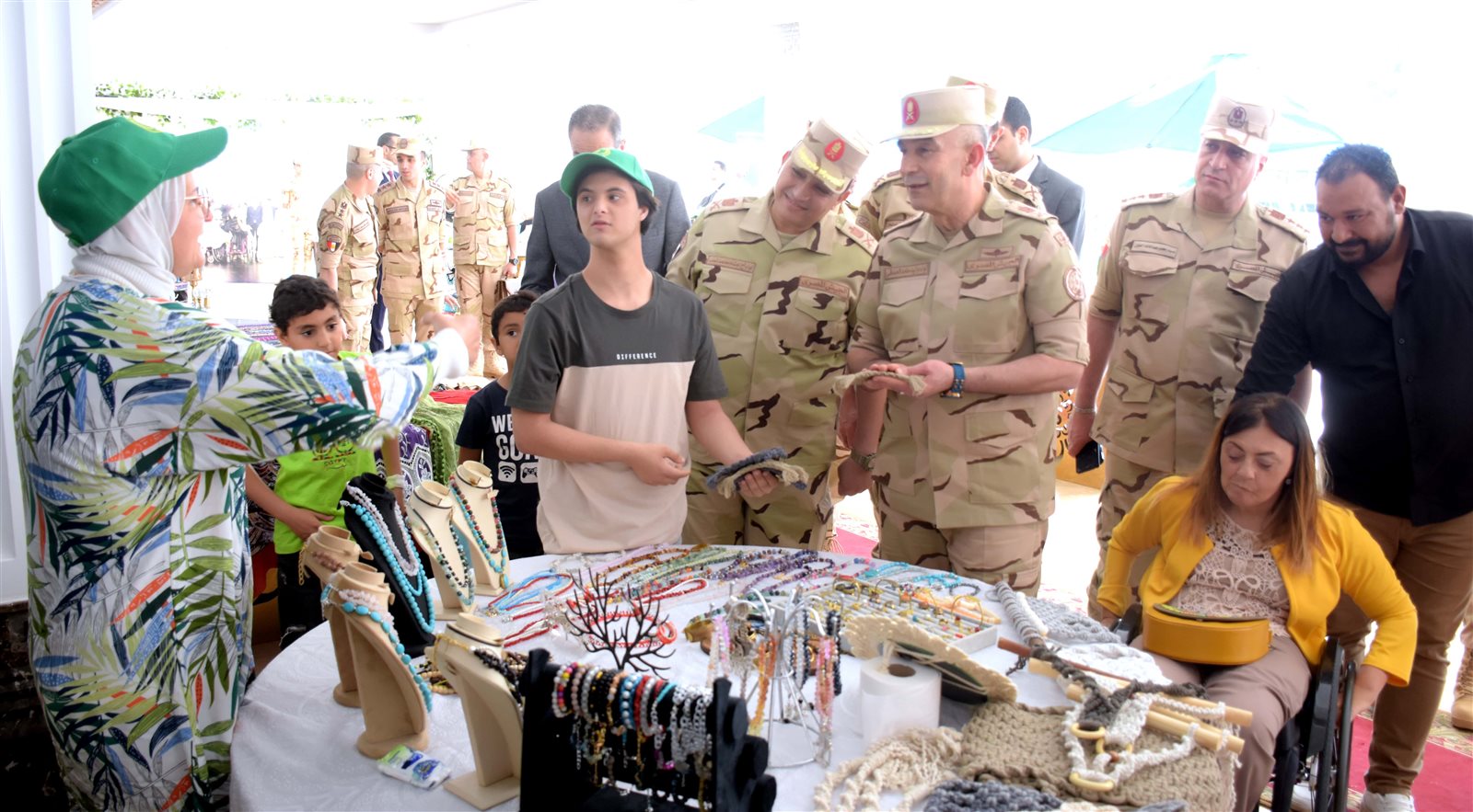 كما إفتتح قائد قوات الدفاع الشعبى والعسكرى يرافقه المشرف العام على المجلس القومى للأشخاص ذوى الإعاقة معرضاً لذوى القدرات الخاصة بدار الدفاع الجوى لعرض منتجاتهم من المشغولات اليدوية والذى حظى بإقبال كبير من قبل الزائرين لما يتضمنه من معروضات وإبداعات وأشكال فنية حولتها الأيدى الماهرة لذوى الإحتياجات الخاصة إلى أدوات تناسب الحياة العصرية بأسلوب جذاب وأفكار جديدة ومبتكرة .