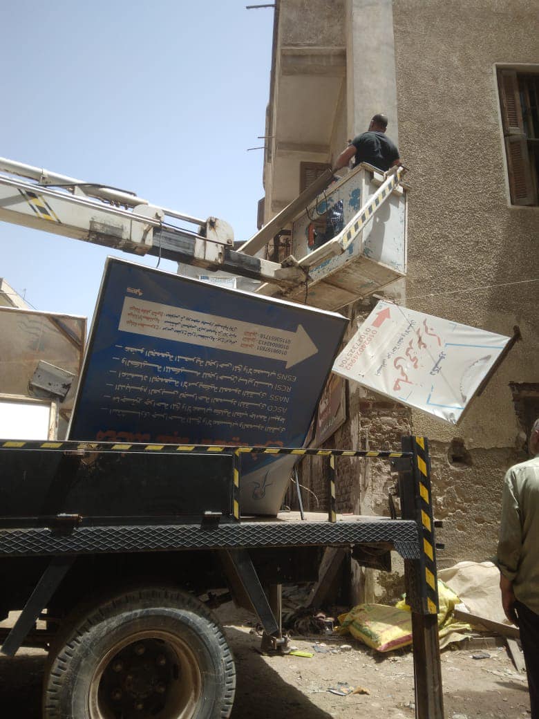 وحرر محاضر للمخالفين وإتخاذ كافة الإجراءات القانونية اللازمة، وذلك فى إطار حملة مكثفة لمواجهة الإعلانات المخالفة على مستوى المحافظة.