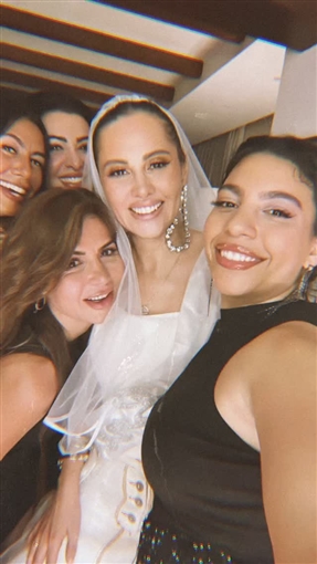 ياسمين رئيس بفستان أبيض ليلة الحنة ودينا الشربيني تدعمها