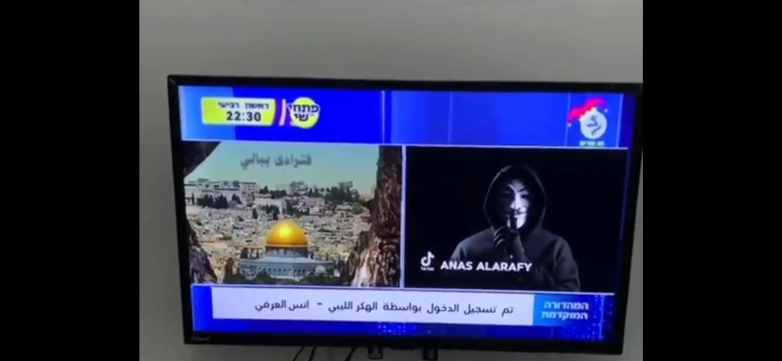 اخترق هاكر ليبي، يدعى أنس العرفي، بثًا لقناة 14 العبرية، وأذاع أغنية وطنية فلسطينية، وذلك بعد دقائق من بيان أبو عبيدة، حول أسر جنود إسرائيليين.