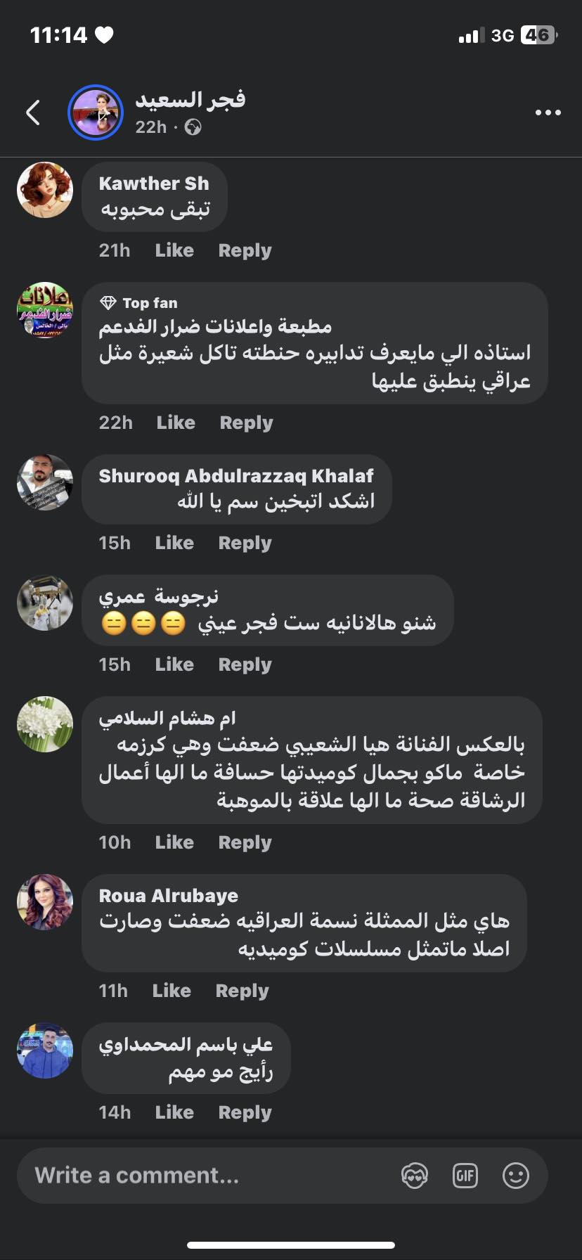 انتشر تعليق فجر السعيد على نطاق واسع بين جمهورها مما آثار استيائهم وغضبهم ودفعهم للهجوم عليها خلال تعليقاتهم على المنشور فكانت أبرزها: "تبخين سم.. رأيك مو مهم .. انتي تركيبتك كلها غلط يا فجر انتقدي نفسك الأول، اتعجب من ان انسانة مثقفة زيك تتكلم بهالخبث، المهم كسبت صحتها .. اتفرجي على خدودك هتضحكي ما في أثقل من دمك".