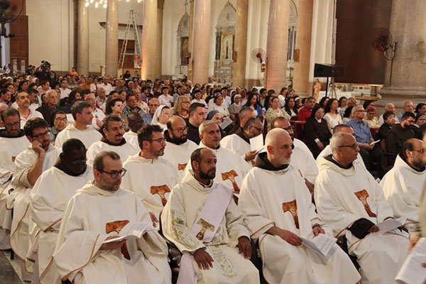 ترأس القداس الإلهى الاحتفالى الأساقفة نيقولاس هنرى، السفير البابوى بمصر، بالإضافة إلى عدد من مطارنة الكنيسة الكاثوليكية بمصر، والأب مراد مجلع، الخادم الإقليمى للرهبنة الفرنسيسكانية بمصر، وعدد من الآباء الكهنة، والرهبان والراهبات، ومحبى القديس فرنسيس الآسيزى.